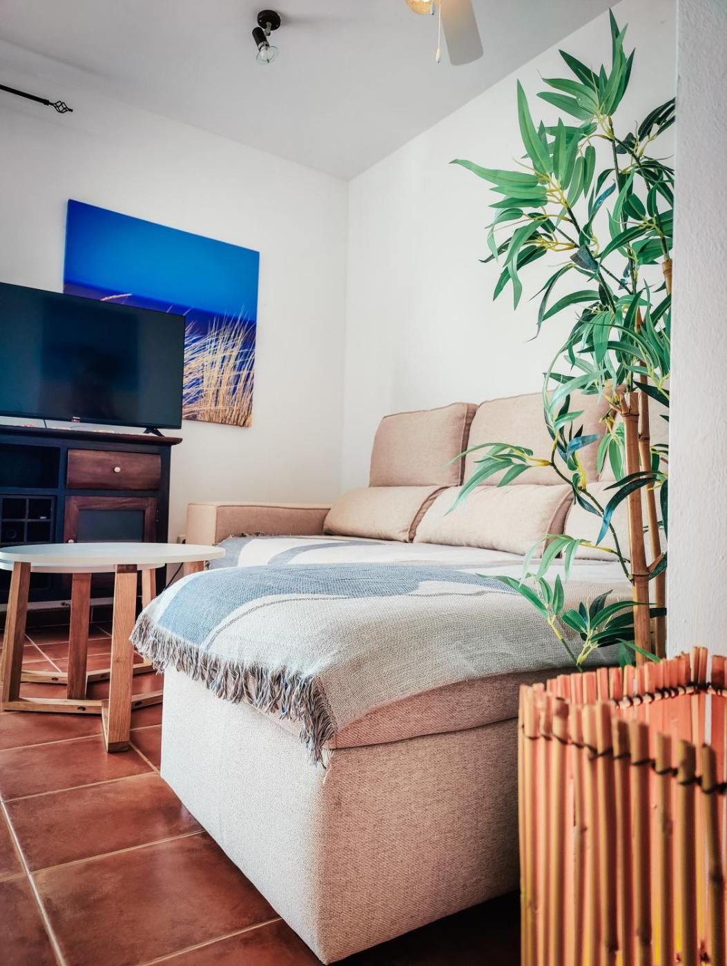 Apartamento de 1 dormitorio. This apartment provides a private pool. The well-equipped kitchen has a refrigerator, a microwave and an electric kettle. The spacious air-conditioned apartment offers a flat-screen TV, a washing machine, a seating area, a wardrobe as well as sea views. The unit has 2 beds.