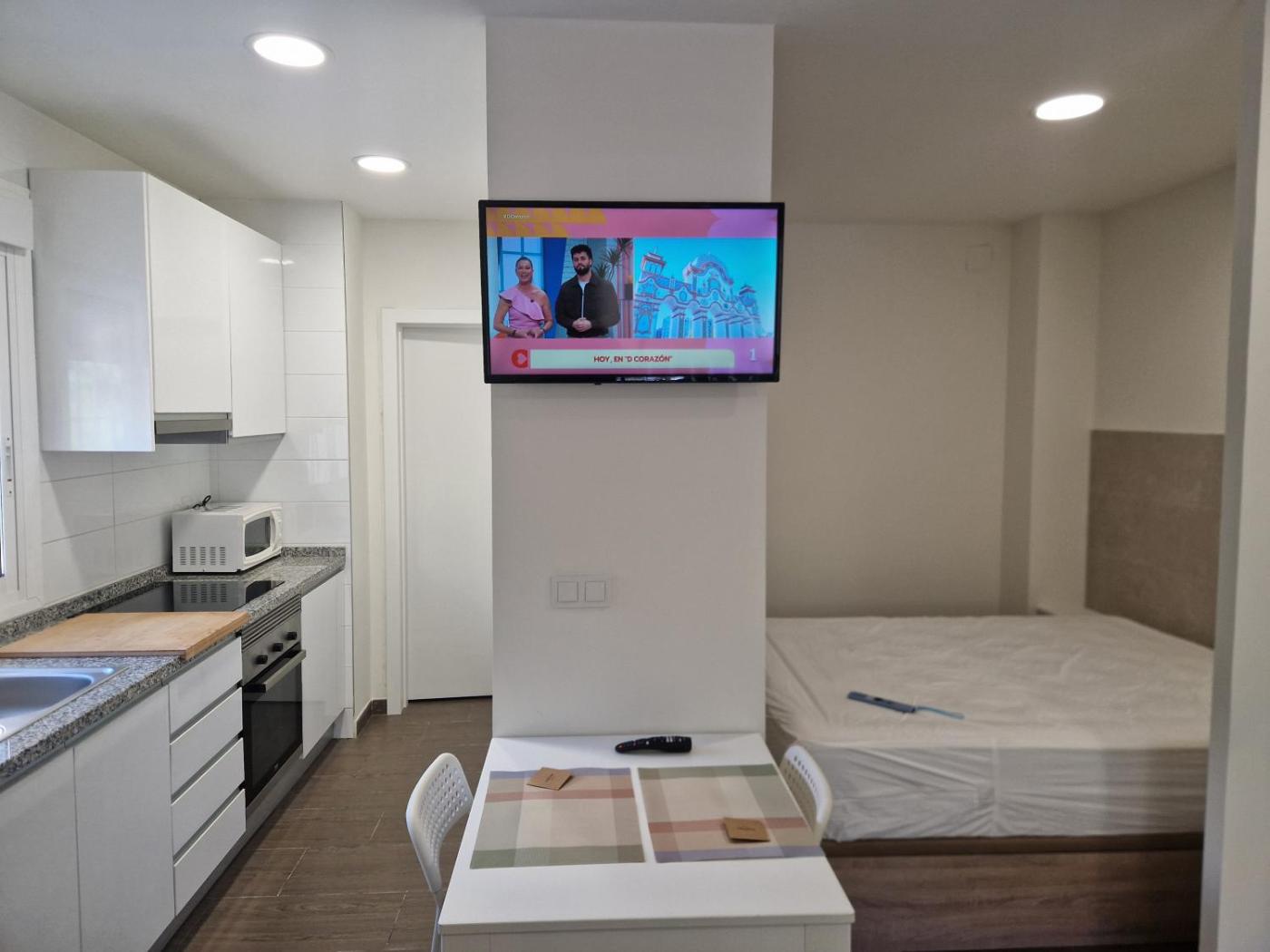 Este apartamento tiene 1 dormitorio, cocina con nevera y horno, TV de pantalla plana, zona de estar y 1 baño con ducha. Hay toallas y ropa de cama en el apartamento.