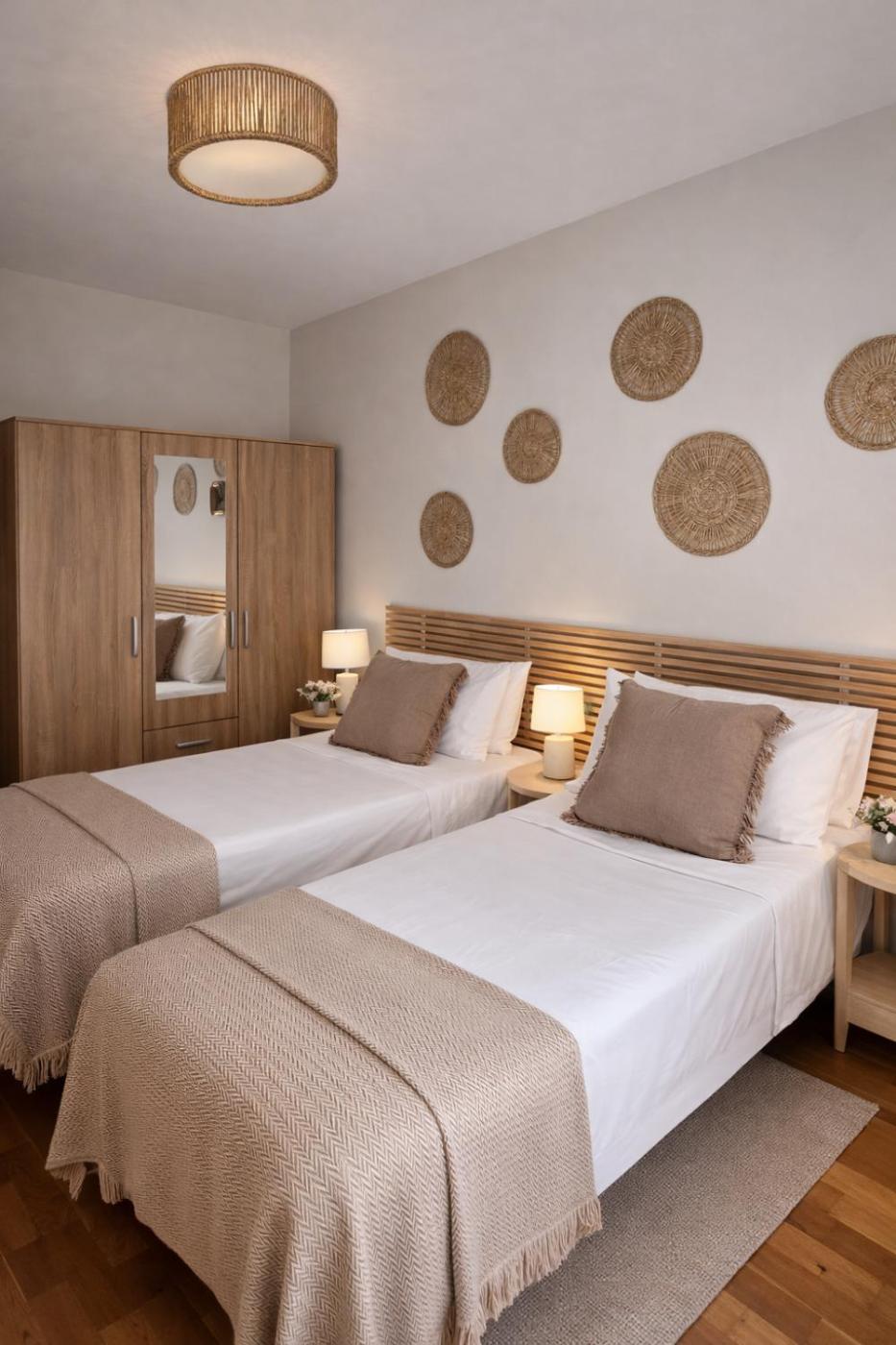 Apartamento Deluxe de 2 dormitorios con vistas al jardín. This spacious apartment includes 1 living room, 2 separate bedrooms and 2 bathrooms with a shower and free toiletries. In the fully equipped kitchen, guests will find a stovetop, a refrigerator, kitchenware and an oven. The air-conditioned apartment offers a flat-screen TV with streaming services, a washing machine, a tea and coffee maker, a seating area as well as garden views. The unit has 5 beds. ;