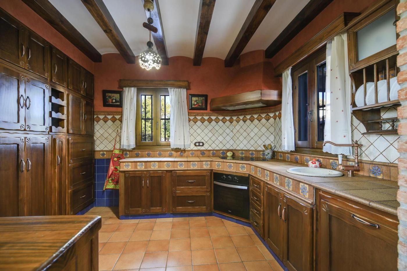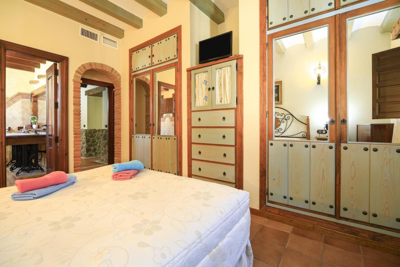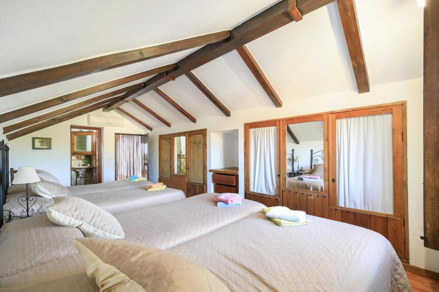 La casa rural tiene 6 dormitorios, 4 baños, ropa de cama, toallas, TV, cocina totalmente equipada y terraza con vistas a la ciudad.