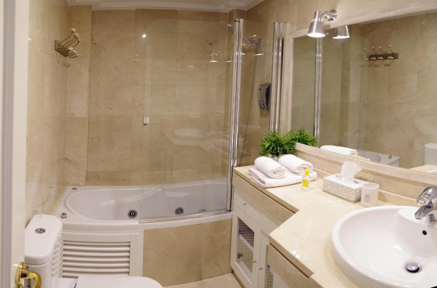 Apartamento de 2 dormitorios. Guests will have a special experience as the apartment provides a hot tub. This spacious apartment consists of 1 living room, 2 separate bedrooms and 2 bathrooms with a bath and a shower. In the well-equipped kitchen, guests will find a stovetop, a dishwasher, an oven and a microwave. This apartment is air-conditioned and features a seating area with a flat-screen TV, a washing machine, a coffee machine, a dining area, as well as a wardrobe. The unit offers 3 beds.