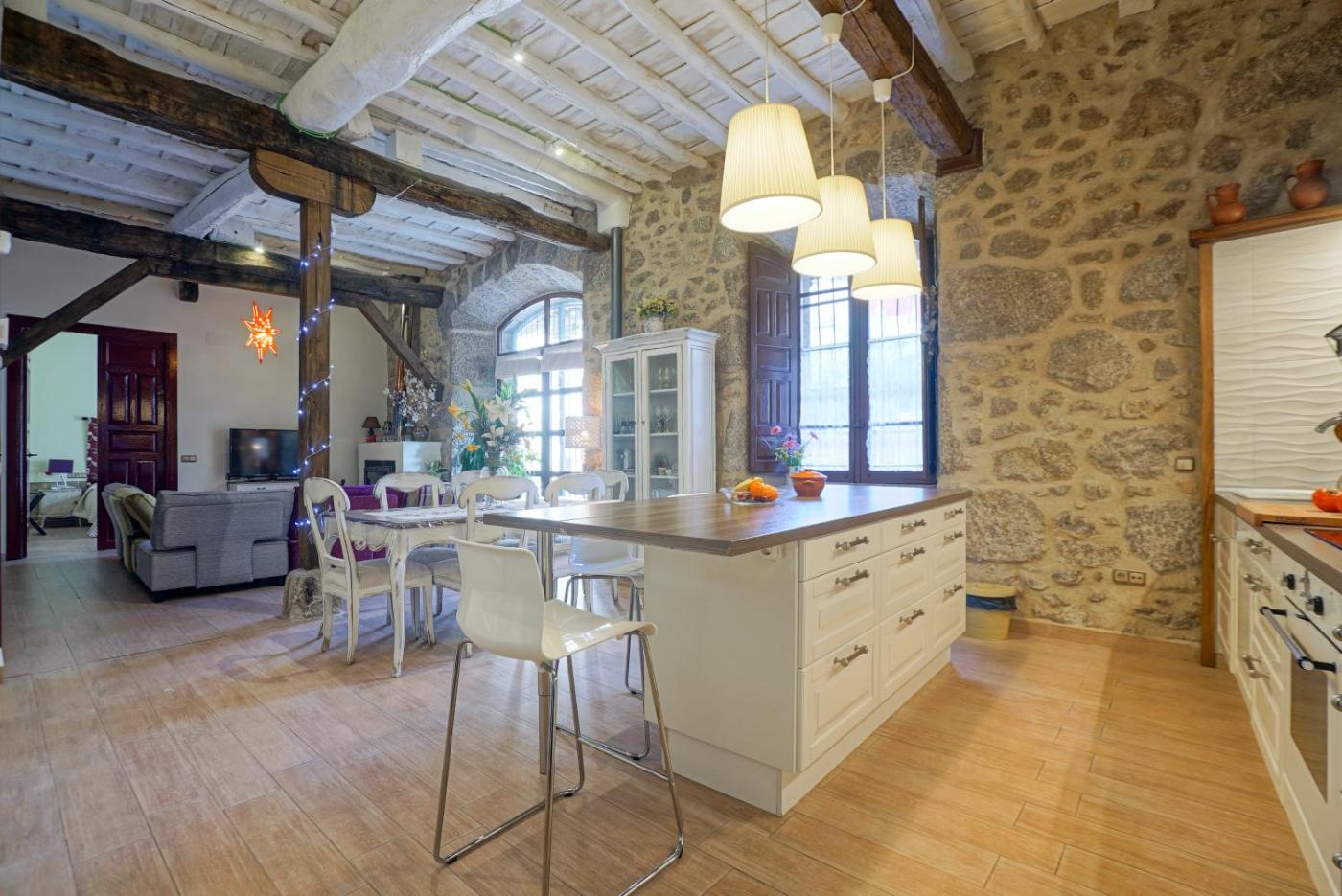 Apartamento de 3 dormitorios (6 adultos + 2 niños). Este apartamento de lujo da a un porche y a un jardín con barbacoa y presenta paredes originales de piedra vista, techo con vigas y una bonita decoración con acabados elegantes de colores vivos. El alojamiento dispone de zona de estar con TV de pantalla plana y sofá, y cocina con microondas, nevera, cafetera y fogones. Se facilita WiFi gratuita. Tiene 3 dormitorios con 2 camas individuales y sofá cama.