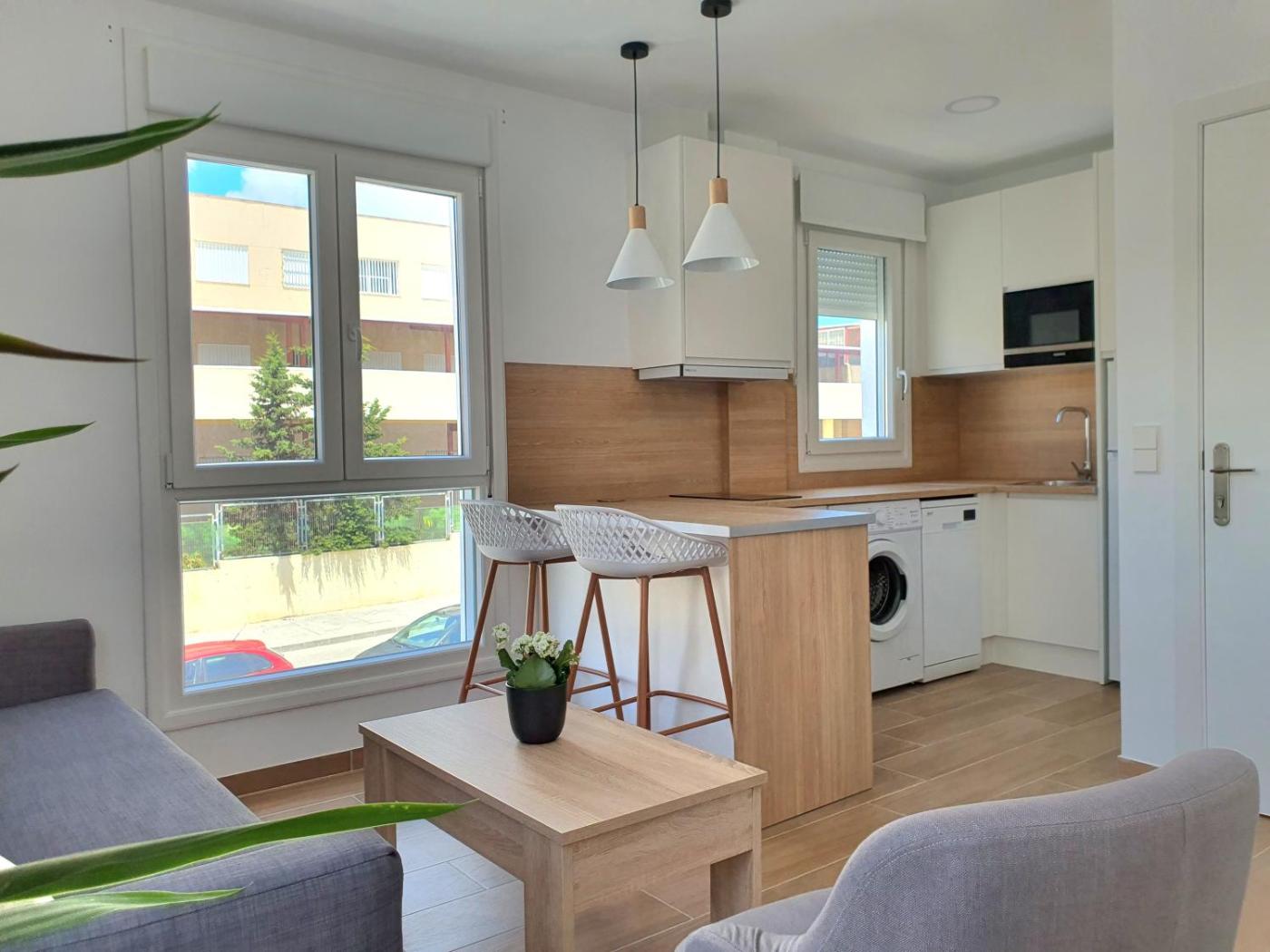 Apartamento de 1 dormitorio. This apartment features a rooftop pool. This air-conditioned apartment includes 1 living room, 1 separate bedroom and 1 bathroom with a shower. Guests can make meals in the kitchen that has a refrigerator, a dishwasher, kitchenware and an oven. The apartment offers a washing machine, a coffee machine, a dining area, a wardrobe and a flat-screen TV. The unit has 2 beds.