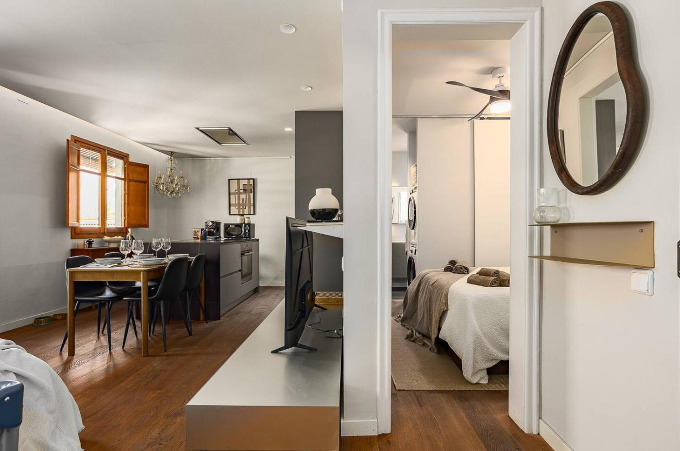 Apartamento Loft de 1 dormitorio con balcón. This air-conditioned apartment is comprised of 1 living room, 1 separate bedroom and 1 bathroom with a shower. The well-fitted kitchen features a stovetop, a refrigerator, a dishwasher and kitchenware. The apartment offers a washing machine, a tea and coffee maker, tumble dryer, heating, as well as a TV. The unit offers 2 beds.