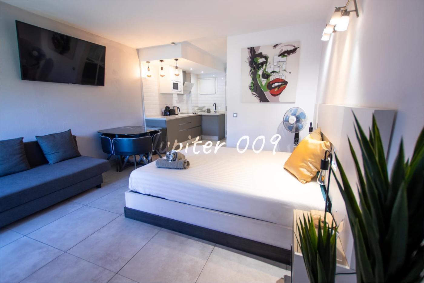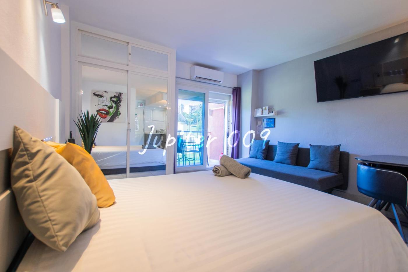 J009 - Studio - Complex Minerva & Jupiter se encuentra en Benalmádena, a 8 min a pie de Playa de Santa Ana y a 1,6 km de Puerto deportivo de Benalmádena, y ofrece alojamiento con wifi gratis, aire acondicionado, piscina al aire libre y jardín. Este alojamiento con vistas a la montaña dispone de terraza.
