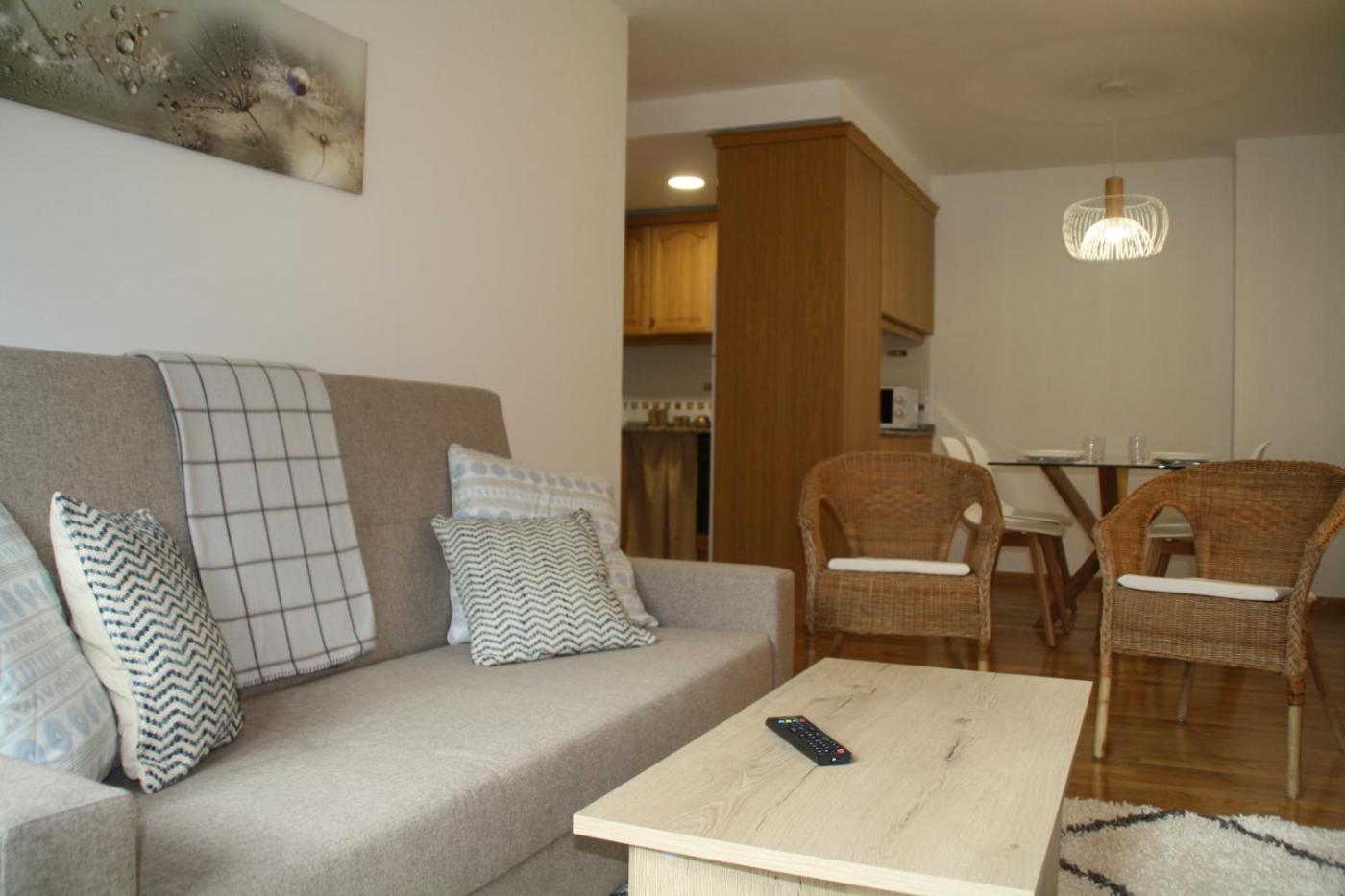 El apartamento de 2 dormitorios tiene sala de estar con TV de pantalla plana, cocina totalmente equipada y 1 baño.