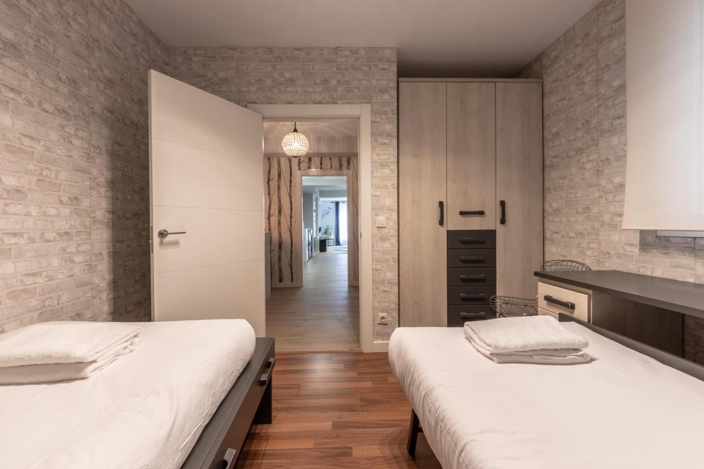 El apartamento cuenta con balcón y vistas a la ciudad, y tiene 3 dormitorios, una sala de estar, TV de pantalla plana, una cocina equipada con nevera y lavavajillas, y 2 baños con ducha. Hay toallas y ropa de cama en el apartamento.