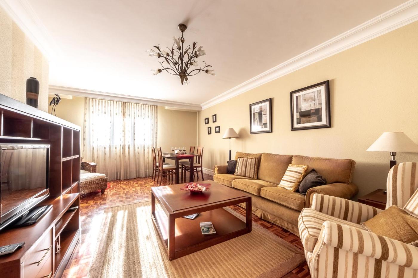 Apartamento Superior con 3 dormitorios. This spacious apartment comes with 1 living room, 3 separate bedrooms and 2 bathrooms with a walk-in shower and free toiletries. In the well-fitted kitchen, guests will find a stovetop, a refrigerator, a dishwasher and kitchenware. The apartment has parquet floors, a seating area with a flat-screen TV, a washing machine, a tea and coffee maker as well as city views. The unit has 5 beds.