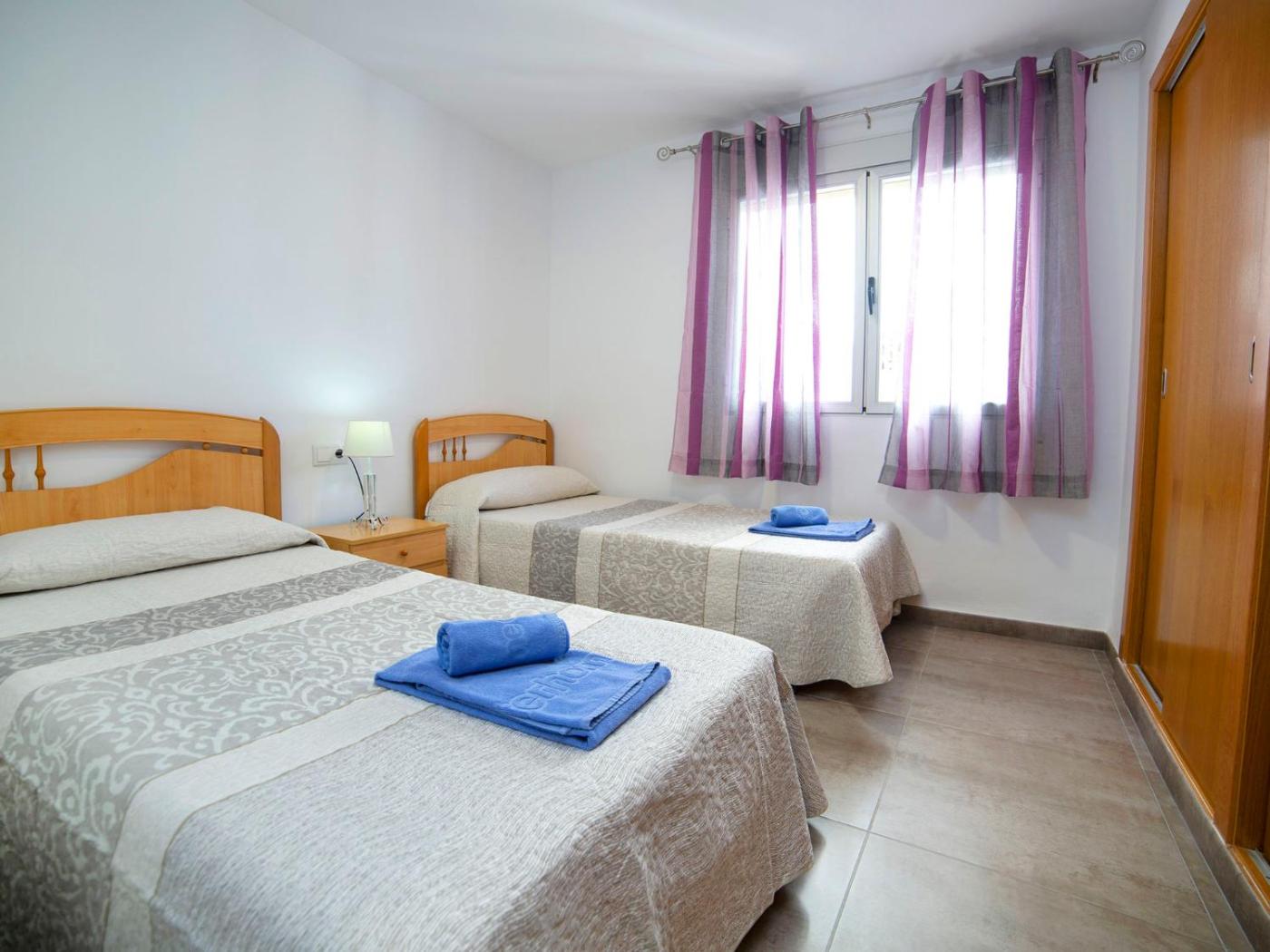El apartamento tiene 2 dormitorios, una cocina con nevera y horno, y 2 baños con ducha, secador de pelo y lavadora. Se ofrece TV.