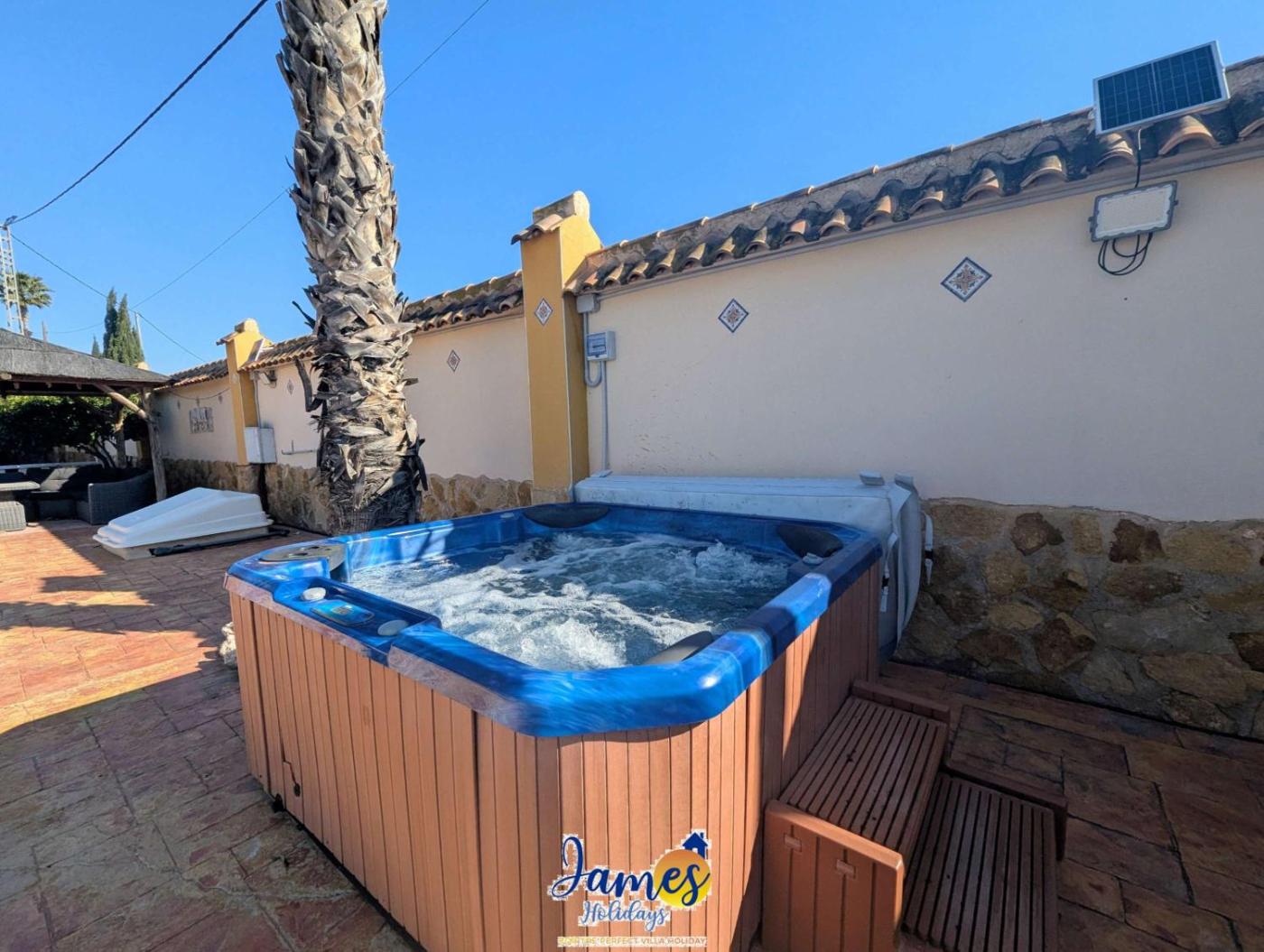 Villa. The private pool and hot tub are the special features of this villa. Boasting a private entrance, this air-conditioned villa comes with 4 bedrooms, 3 bathrooms and a kitchen. Guests will find a stovetop, a refrigerator, kitchenware and an oven in the well-equipped kitchen. The villa also includes a barbecue. Featuring a patio, this villa also features a washing machine, a wardrobe and a TV. The unit has 5 beds.
