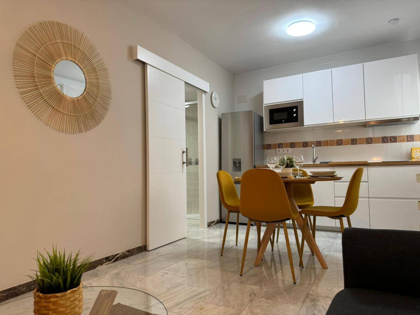 Apartamento de 1 dormitorio. This air-conditioned apartment comes with 1 living room, 1 separate bedroom and 1 bathroom with a shower. The kitchen features a refrigerator, a microwave and a toaster. The apartment features a coffee machine, a seating area, a dining area, a wardrobe, as well as a flat-screen TV. The unit has 2 beds.