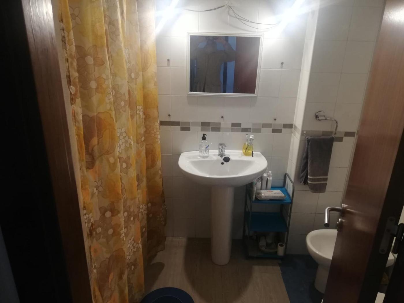 Habitación Triple Básica con baño compartido. Featuring free toiletries, this triple room includes a shared bathroom with a bath, a shower and a hairdryer. The triple room has tiled floors and features a washing machine, a wardrobe and mountain views. The unit has 3 beds.