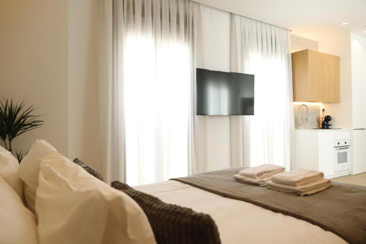Estudio Deluxe. Este estudio dispone de baño privado con ducha a ras de suelo, artículos de aseo gratuitos y secador de pelo. La cocina está equipada con fogones, nevera, utensilios y horno. El estudio cuenta con aire acondicionado, zona de estar con TV de pantalla plana, lavadora, entrada privada, paredes insonorizadas y cafetera.