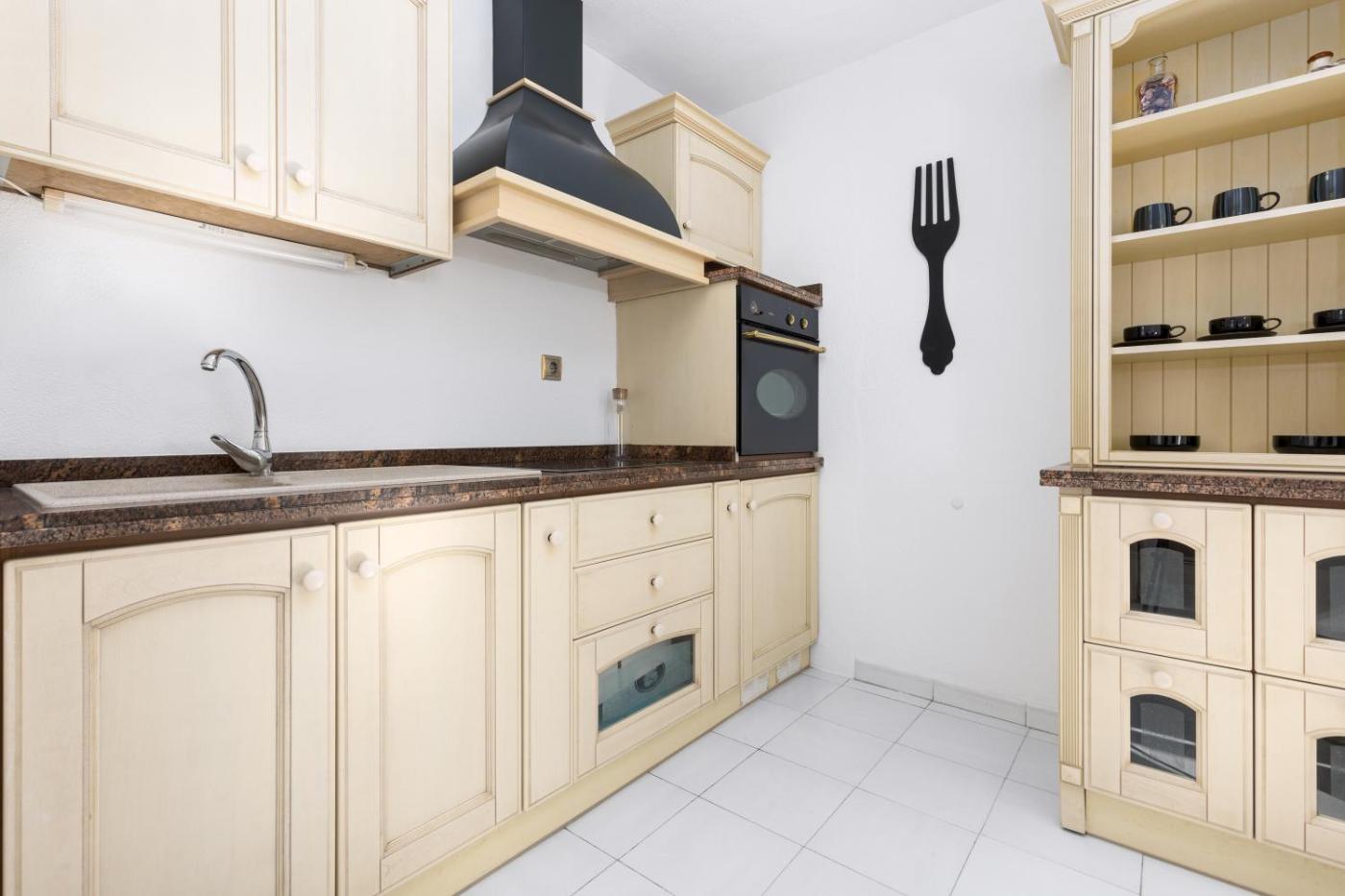 Este apartamento consta de 1 dormitorio, una sala de estar, una cocina totalmente equipada con nevera y cafetera, y 1 baño con ducha y artículos de aseo gratuitos. Hay toallas y ropa de cama en el apartamento.
