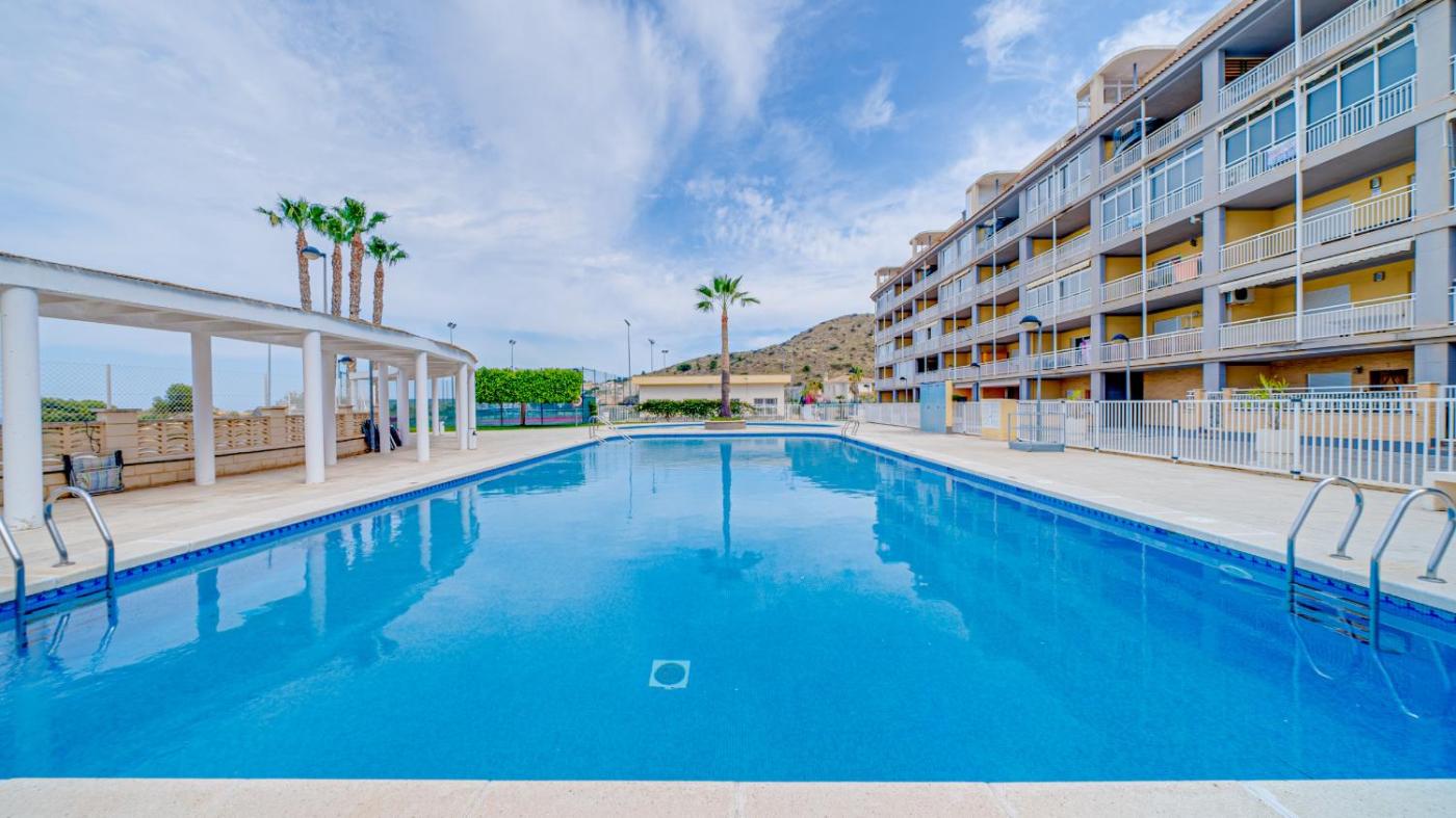 El apartamento cuenta con 3 dormitorios, 2 baños, ropa de cama, toallas, TV, cocina totalmente equipada y terraza con vistas a la piscina.