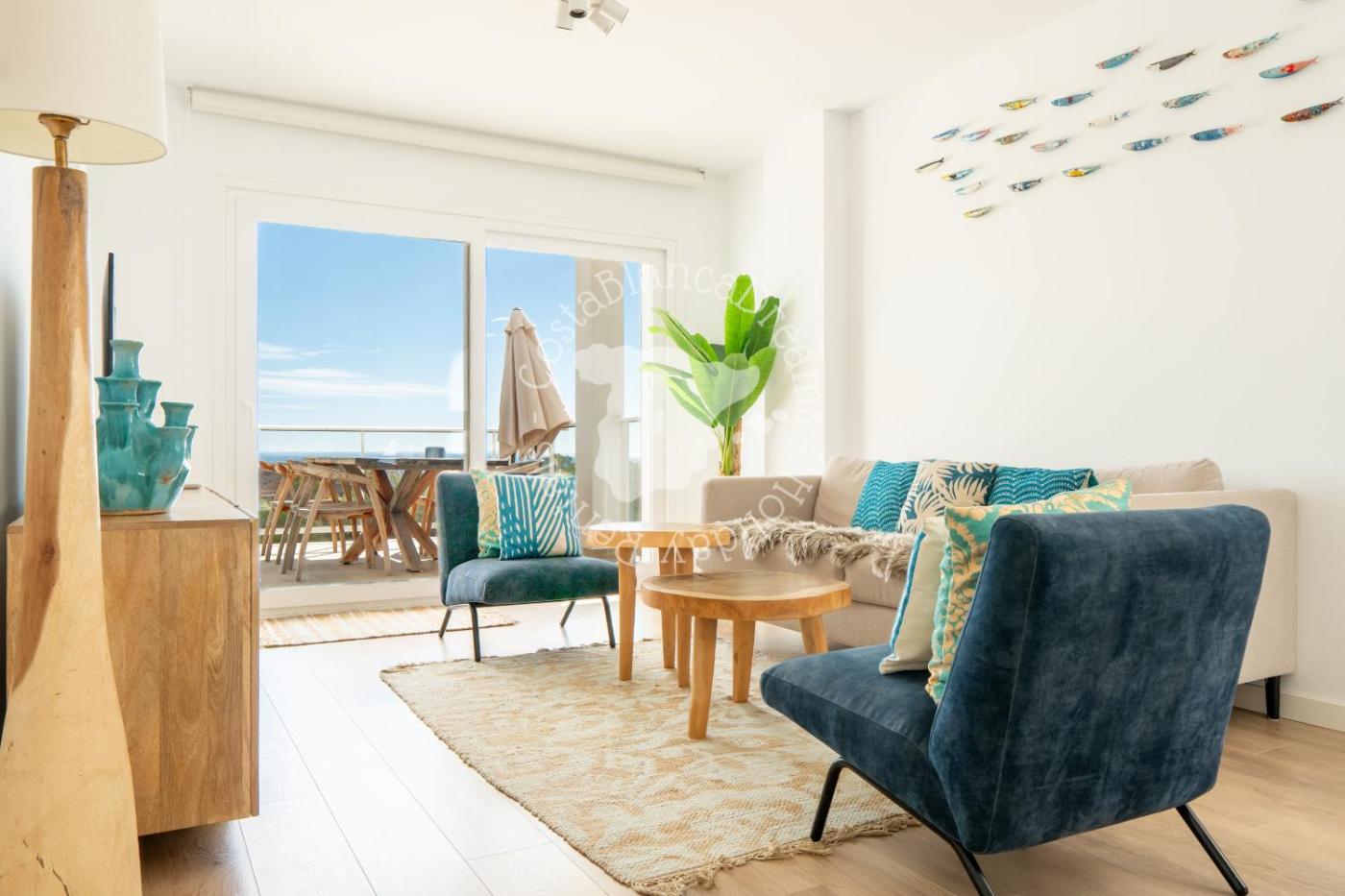 El apartamento cuenta con 2 dormitorios, 2 baños, ropa de cama, toallas, TV, cocina totalmente equipada y terraza con vistas al mar.
