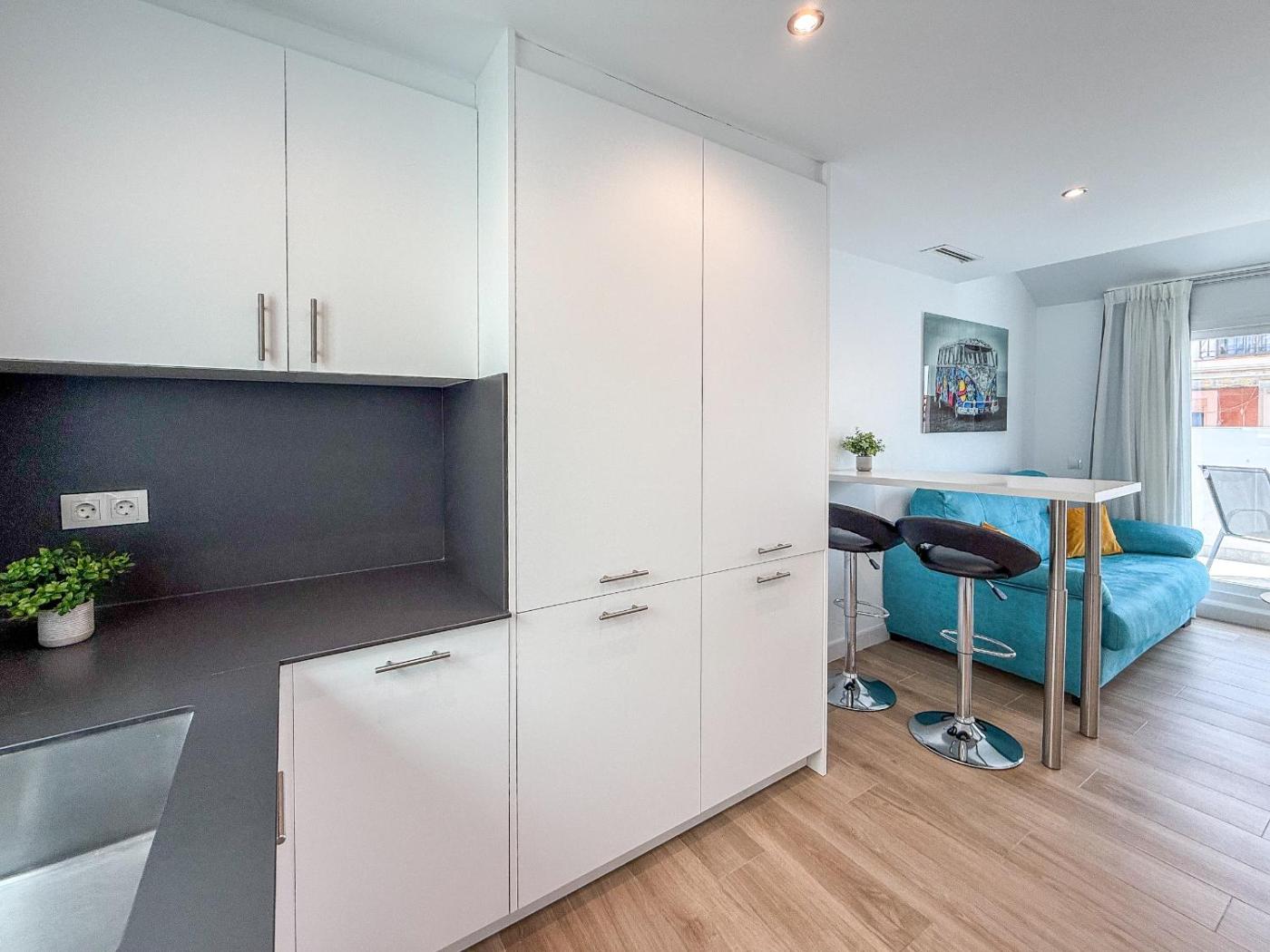 Apartamento. The air-conditioned apartment has 1 bedroom and 1 bathroom with a shower and a hairdryer. Guests can make meals in the kitchen that has a stovetop, a refrigerator, a dishwasher and kitchenware. Boasting a terrace with city views, this apartment also features a washing machine and a flat-screen TV. The unit has 2 beds.
