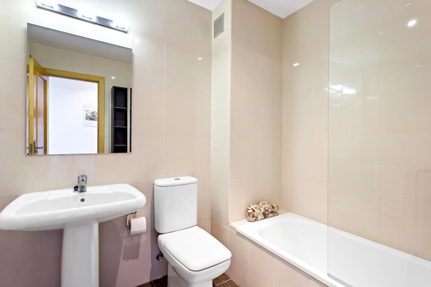 Apartamento de 4 dormitorios con vistas al mar. This spacious apartment is comprised of 4 bedrooms, a kitchen and 4 bathrooms with a bath or a shower. The well-fitted kitchen features a stovetop, a refrigerator, a dishwasher and an oven. The air-conditioned apartment offers a flat-screen TV, a washing machine, a wardrobe, an electric kettle as well as sea views. The unit offers 5 beds.