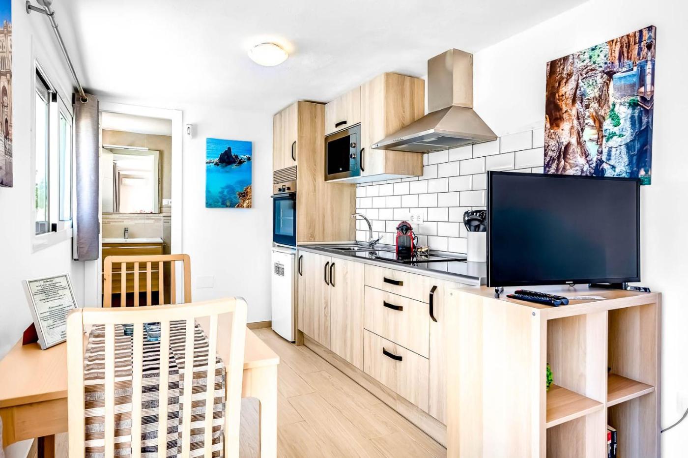 Estudio con terraza. Offering free toiletries, this studio includes a private bathroom with a shower and a hairdryer. The well-fitted kitchen features kitchenware, an oven, a microwave and a toaster. The studio offers air conditioning, a coffee machine, a high chair for children, a TV with streaming services, as well as garden views. The unit offers 1 bed.