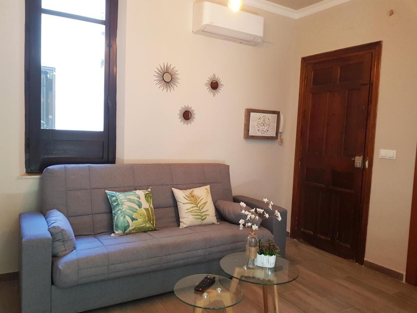 Apartamento de 1 dormitorio. Este apartamento tiene aire acondicionado, dormitorio, baño y sala de estar con zonas de estar y de comedor. La cocina está equipada con nevera, menaje de cocina y microondas. El apartamento dispone de entrada privada, cafetera, armario, sofá y TV. Incluye 2 camas. ;