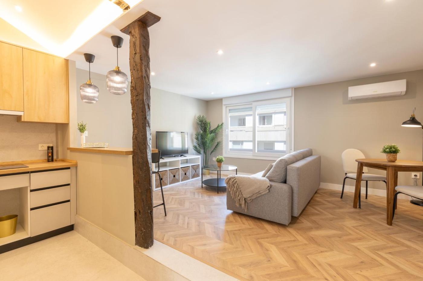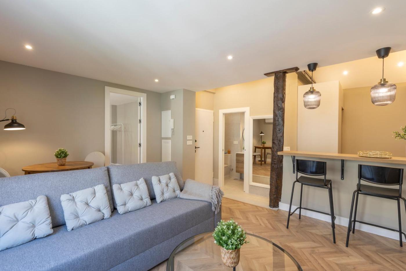 Apartamento de 1 dormitorio. This air-conditioned apartment comes with 1 living room, 1 separate bedroom and 1 bathroom with a shower. The apartments kitchen, which features a refrigerator, is available for cooking and storing food. The apartment has parquet floors, a seating area with a flat-screen TV, a dining area, heating as well as a quiet street view. The unit has 2 beds.