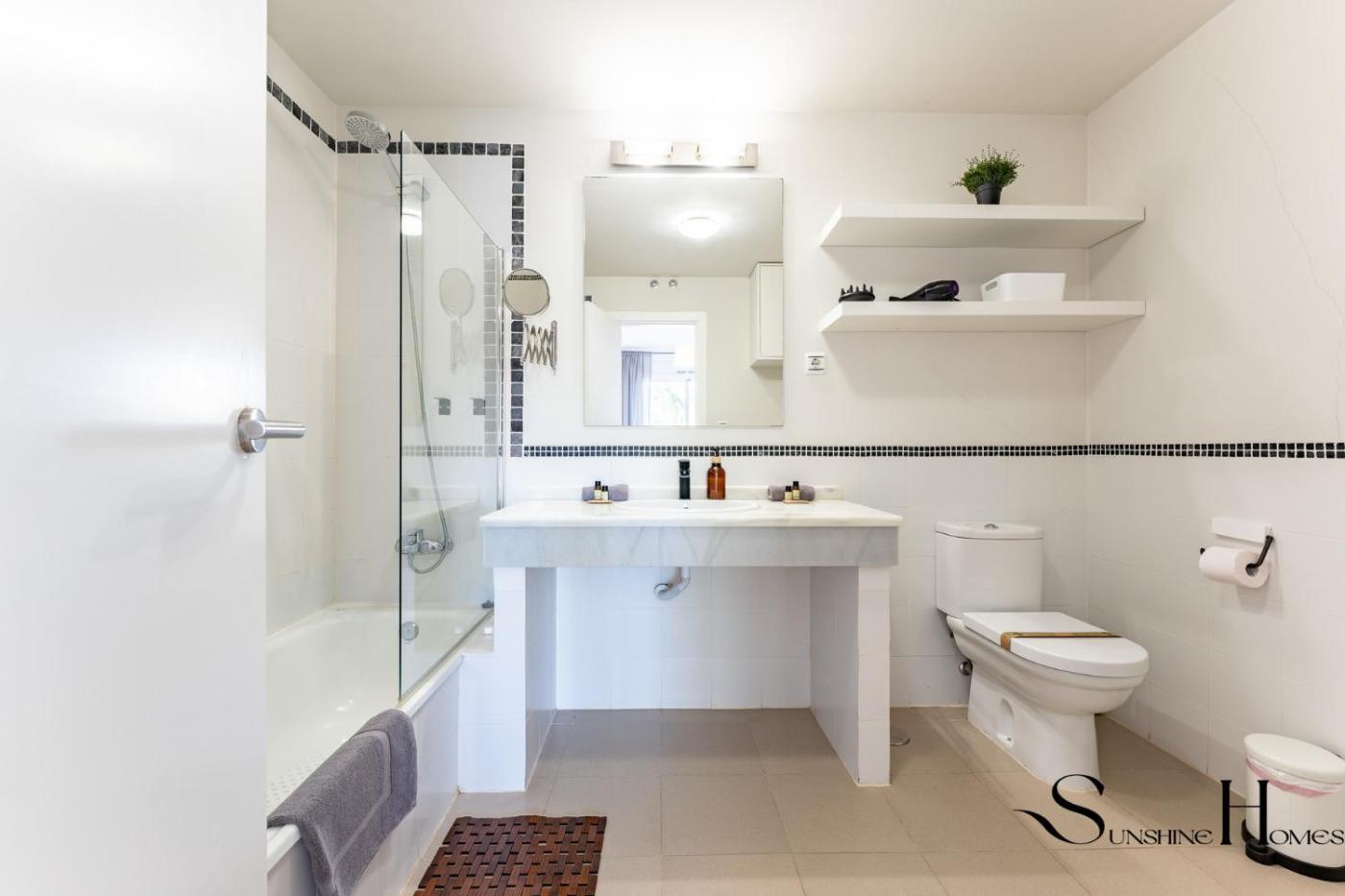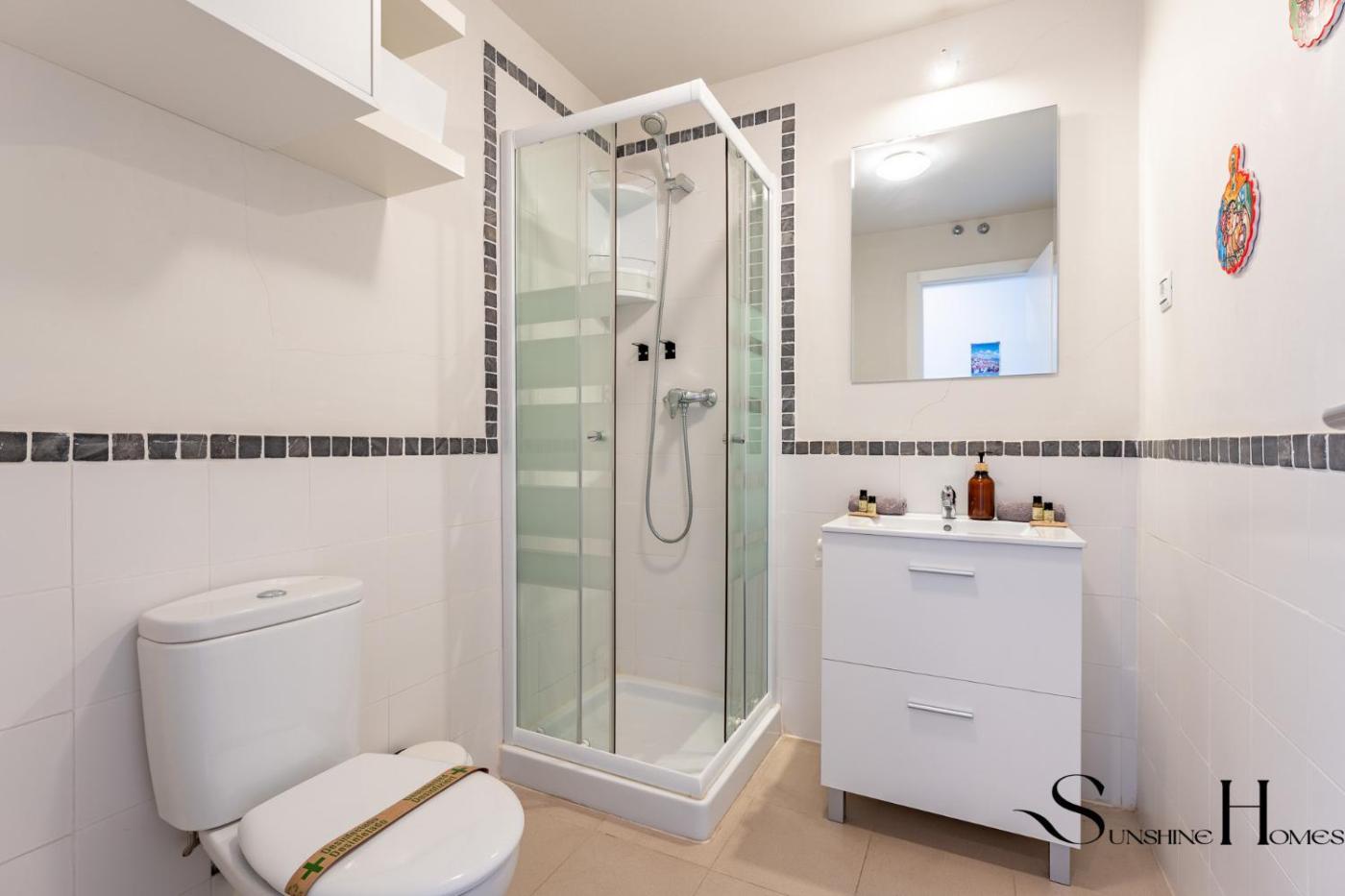 Apartamento de 2 dormitorios con terraza y vistas al mar. Featuring a private entrance, this air-conditioned apartment comprises 1 living room, 2 separate bedrooms and 2 bathrooms with a bath and a shower. Meals can be prepared in the kitchen, which is equipped with a stovetop, a refrigerator, a dishwasher and kitchenware. The spacious apartment provides a washing machine, a tea and coffee maker, a seating area as well as a terrace with sea views. The unit offers 3 beds.