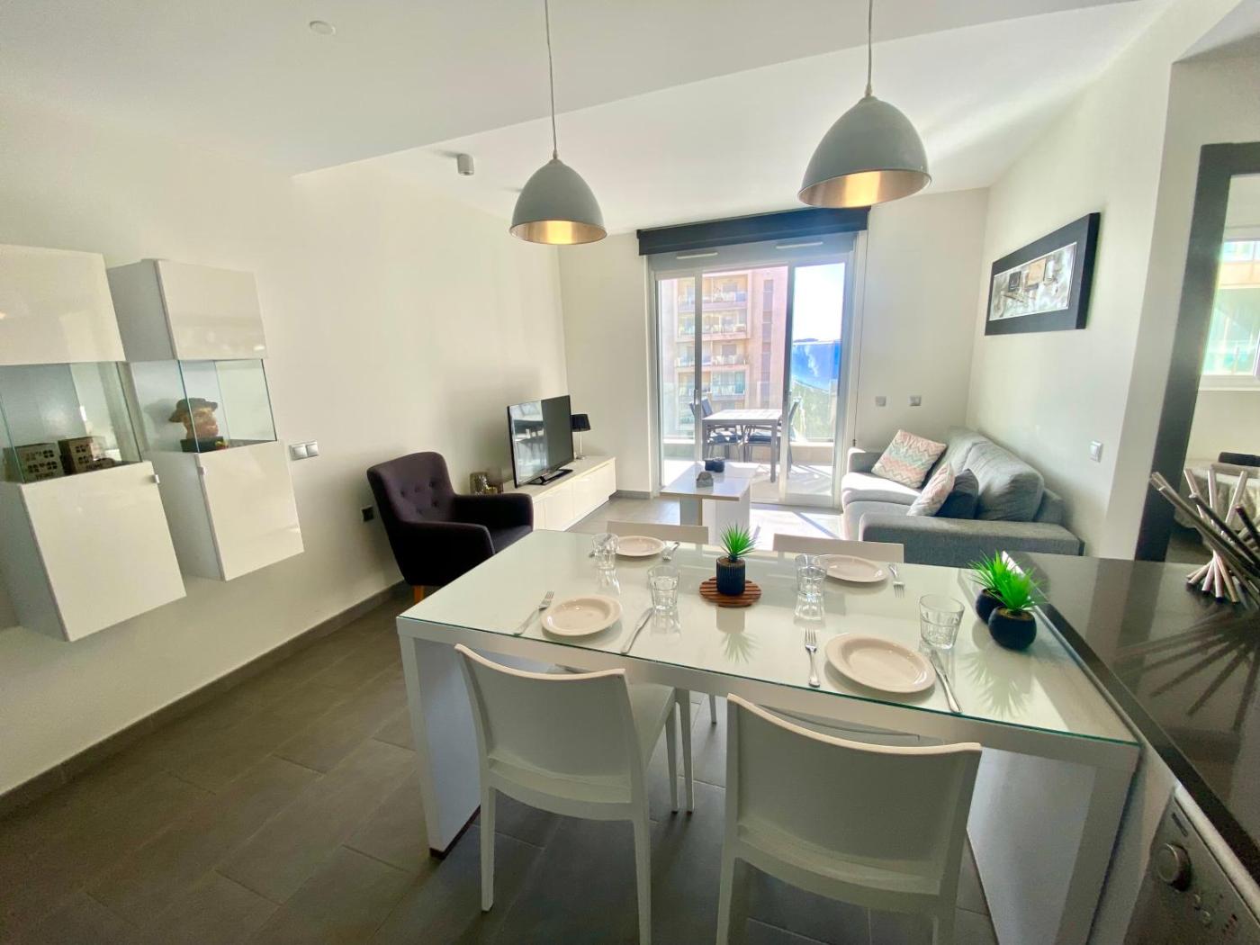 Apartamento de 2 dormitorios con vistas al mar. The pool with a view is the standout feature of this apartment. Boasting a private entrance, this air-conditioned apartment features 1 living room, 2 separate bedrooms and 2 bathrooms with a walk-in shower and a bidet. Meals can be prepared in the kitchen, which has a stovetop, a refrigerator, a dishwasher and kitchenware. The spacious apartment features a washing machine, soundproof walls, a tea and coffee maker, a flat-screen TV, as well as sea views. The unit has 3 beds.