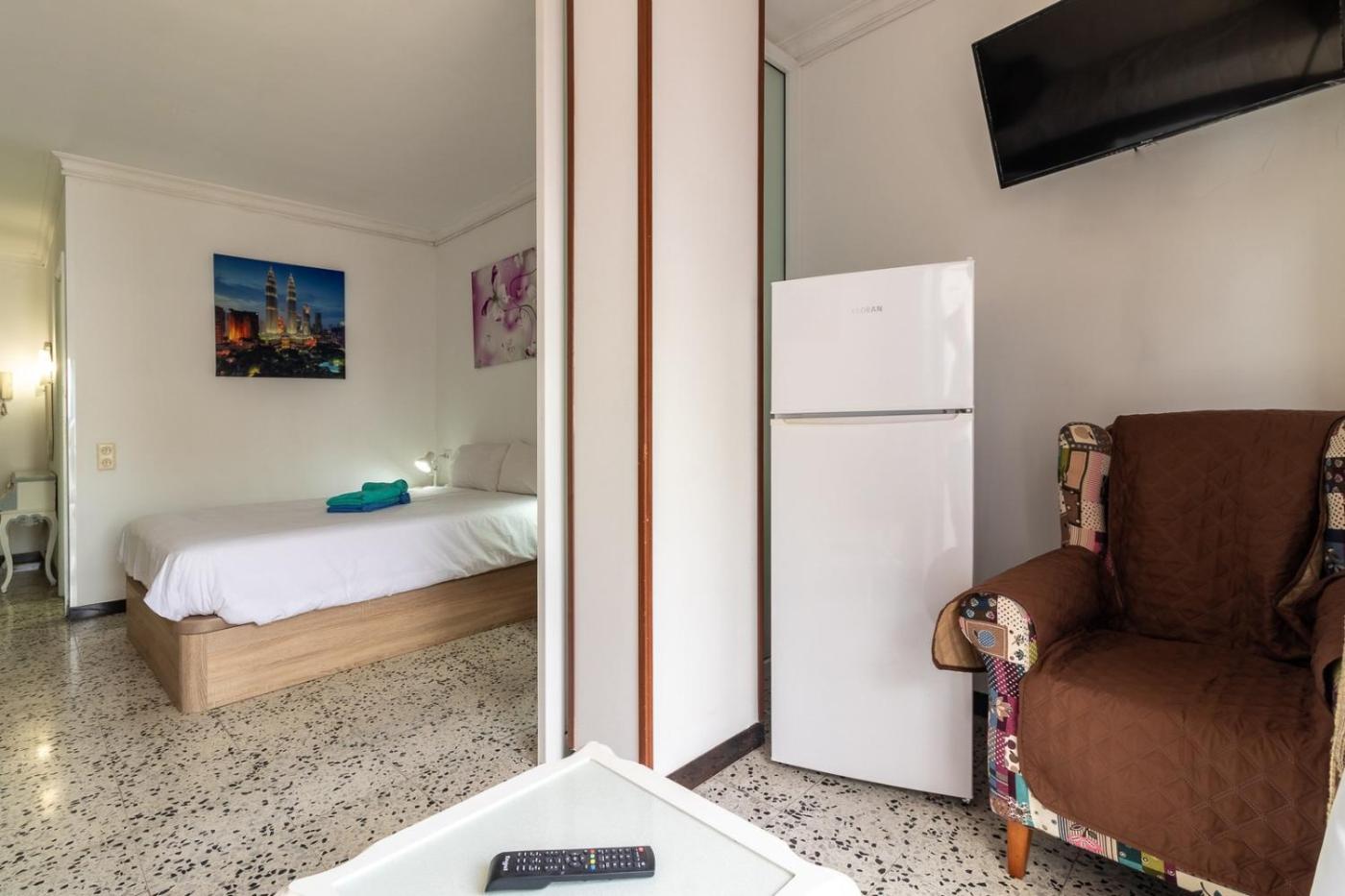 Este apartamento ofrece TV, aire acondicionado y sala de estar. La cocina está equipada con microondas y fogones, además de cafetera.