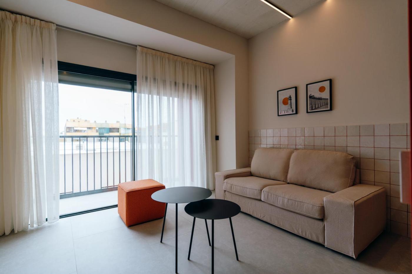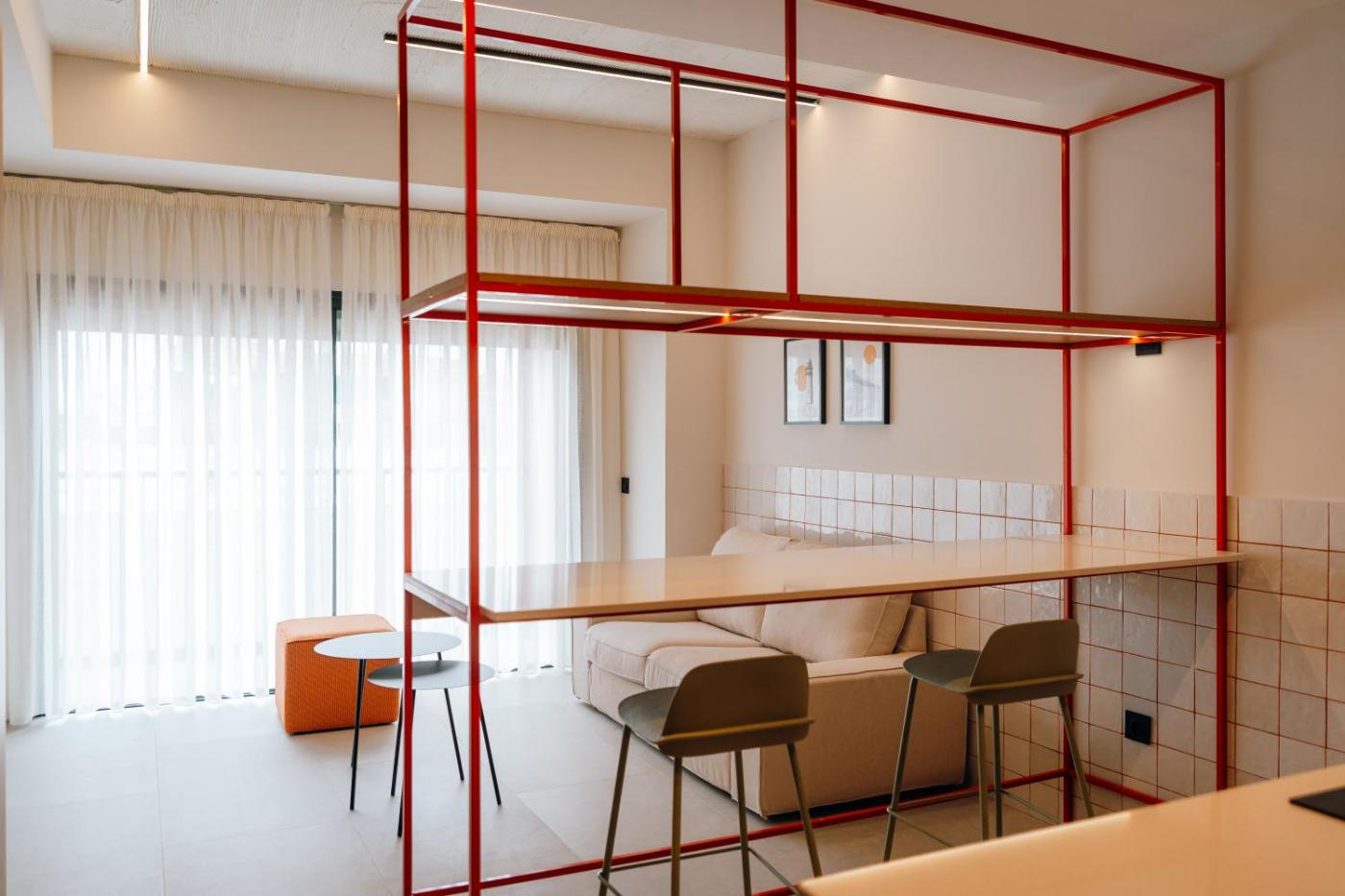 Apartamento Estudio - 1 cama doble. Este apartamento tiene aire acondicionado, 1 dormitorio y 1 baño con ducha y secador de pelo. La cocina está equipada con nevera, utensilios de cocina, microondas y tostadora. El apartamento dispone de cafetera, zona de estar, sofá, suelo de baldosa y TV de pantalla plana con servicios de streaming. La unidad dispone de 1 cama. ;