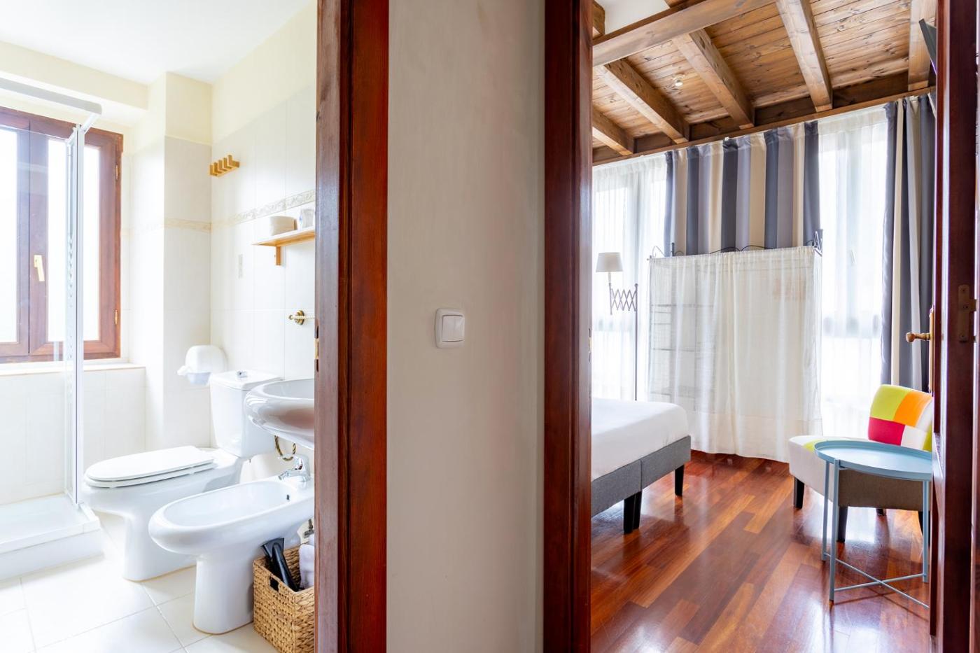 Habitación Doble. Providing free toiletries, this double room includes a private bathroom with a shower, a bidet and a hairdryer. The double room provides a flat-screen TV, a wardrobe, parquet floors, heating as well as garden views. ;