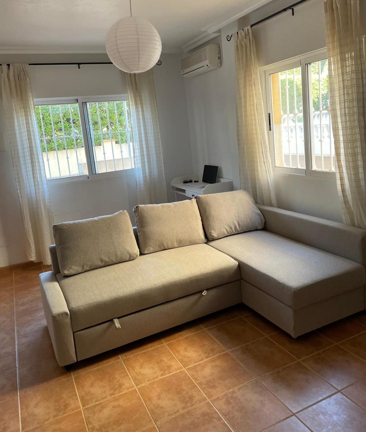 Esta casa o chalet con aire acondicionado consta de 3 dormitorios, una sala de estar, una cocina totalmente equipada con nevera y cafetera, y 2 baños con bidet y ducha. Hay toallas y ropa de cama en la casa o chalet.