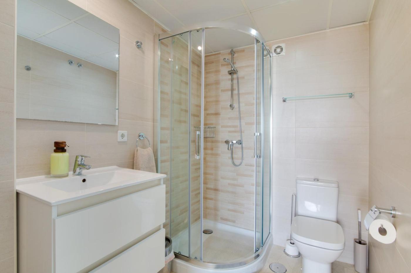 Apartamento Deluxe de 2 dormitorios con vistas al mar. Boasting a private entrance, this spacious apartment also includes 2 separate bedrooms and 2 bathrooms with a shower and a hairdryer. In the well-fitted kitchen, guests will find a dishwasher, kitchenware, an oven and a microwave. The air-conditioned apartment offers a TV with streaming services, a washing machine, a coffee machine, a safe deposit box as well as sea views. The unit has 3 beds.