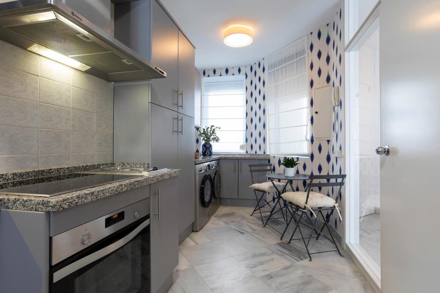 Este apartamento con aire acondicionado consta de 3 dormitorios, una sala de estar, una cocina totalmente equipada con nevera y cafetera, y 2 baños con bidet y ducha. Hay toallas y ropa de cama en el apartamento.