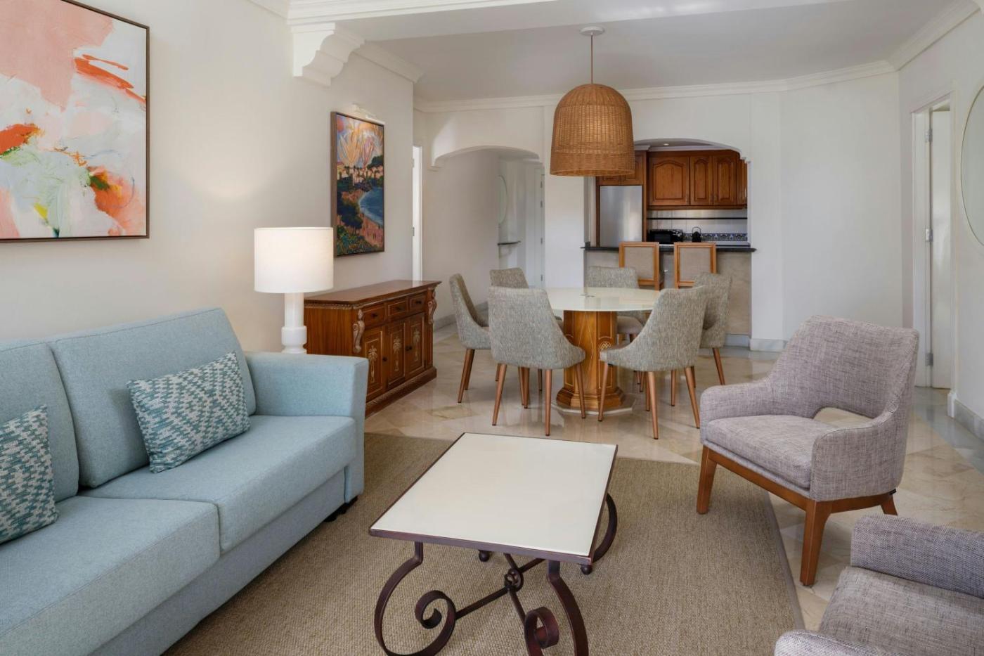 Los apartamentos del Marriotts Marbella Beach Resort constan de cocina, zonas de estar y de comedor independientes, lavandería y baño privado con bañera de hidromasaje.