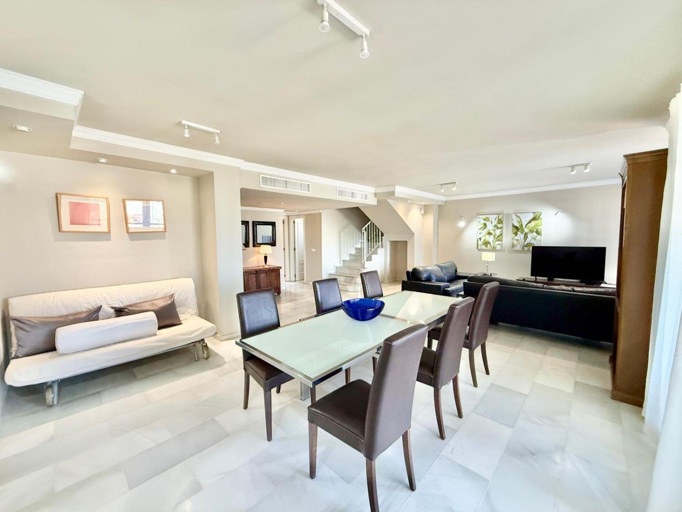 Penthouse Golden Mile Seaviews With Paddle Court - EaW Homes está en Marbella y ofrece alojamiento con balcón y wifi gratis. Este apartamento tiene piscina privada, jardÃn y parking privado gratis.