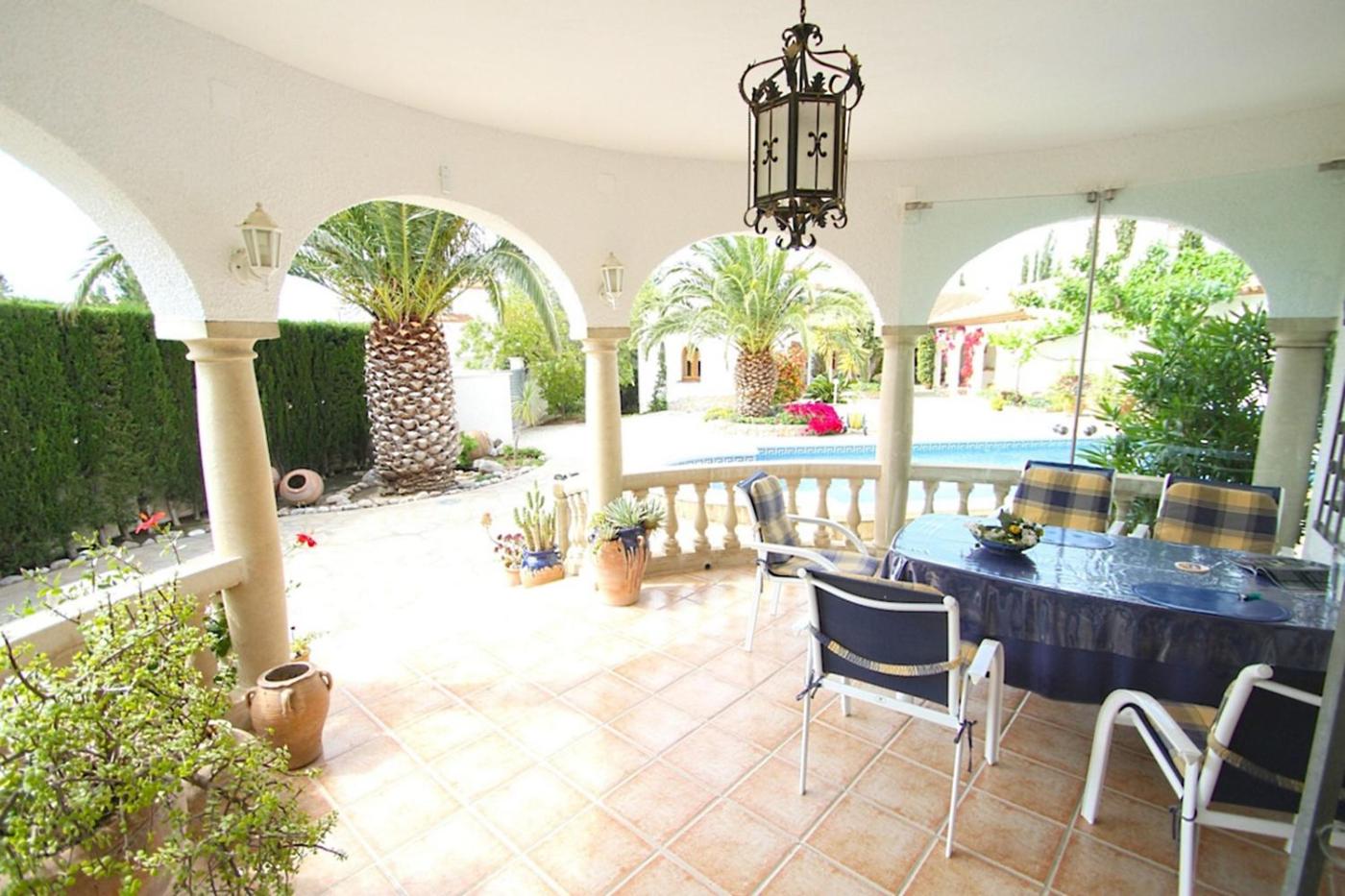La villa dispone de 4 dormitorios, 3 baños, ropa de cama, toallas, TV de pantalla plana, zona de comedor, cocina totalmente equipada y terraza con vistas a la piscina.