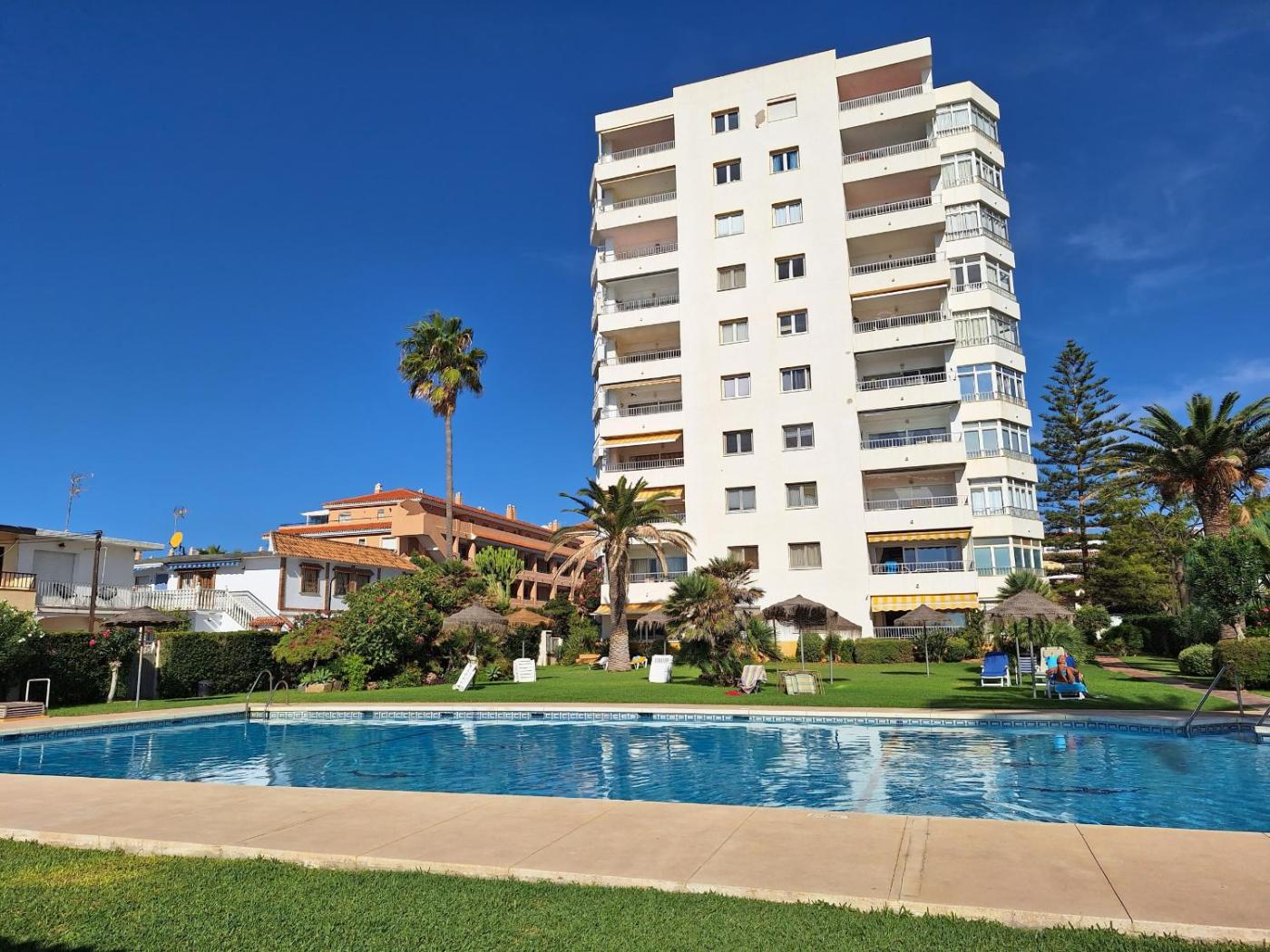 Estudio con vistas en la Butiplaya - Mijas Costa CS104, que tiene piscina al aire libre y vistas al mar, está en Mijas Costa. El apartamento, que se encuentra en un edificio de 1975, está a 6 min a pie de Playa de La Cala - La Butibamba y a 10 km de Campo de Golf La Cala.