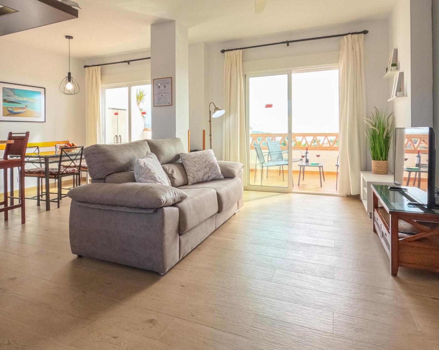 Apartamento con vistas al mar. Featuring impressive views of the ocean and surrounding mountains, this air-conditioned apartment features a bedroom and a bathroom, living space with satellite TV, and well-equipped kitchen. There is private parking and free WiFi is provided. ;
