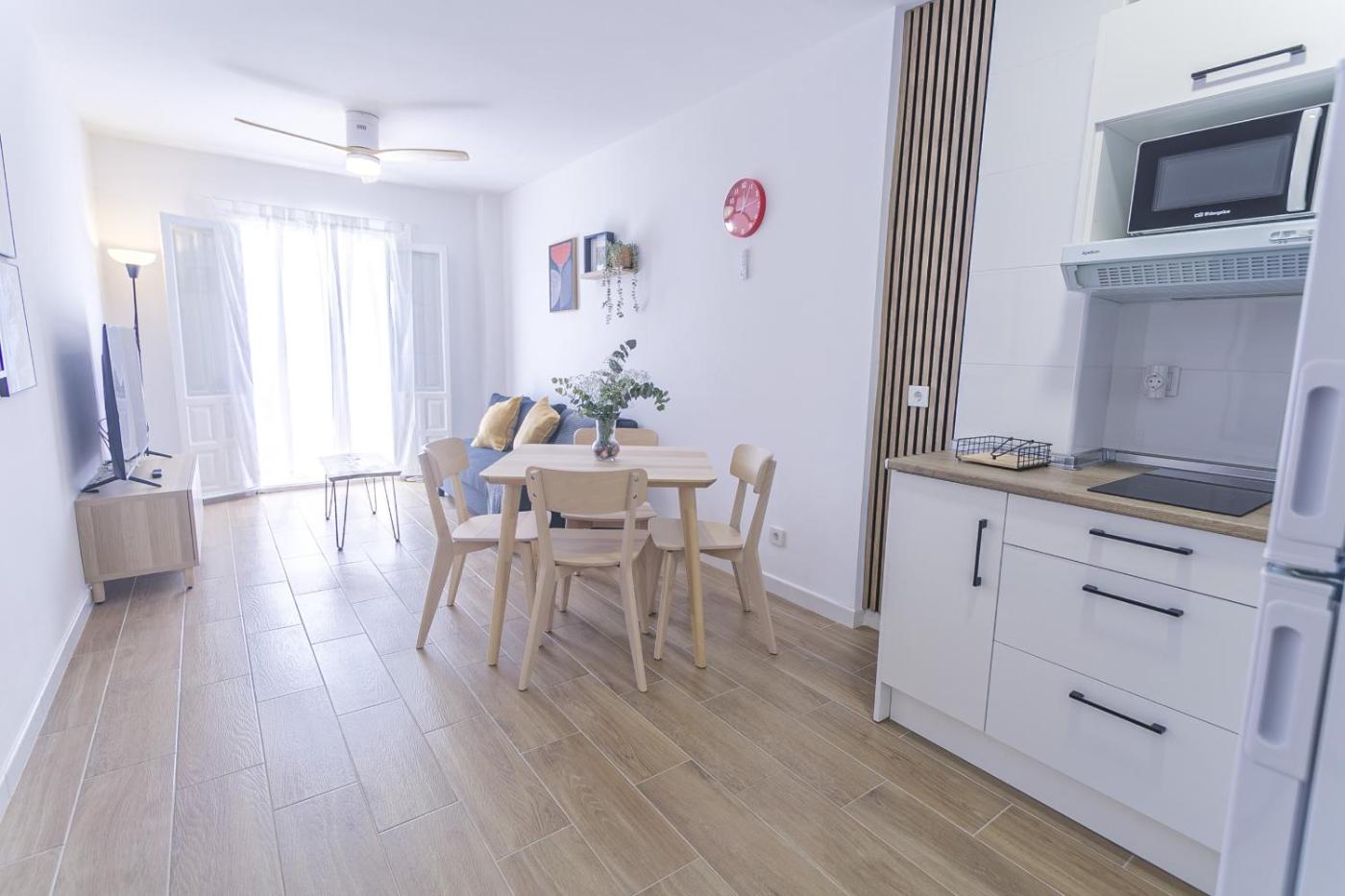 Apartamento Superior de 1 dormitorio. Boasting a private entrance, this air-conditioned apartment includes 1 living room, 1 separate bedroom and 1 bathroom with a shower and a hairdryer. Guests can make meals in the kitchen that has a stovetop, a refrigerator, kitchenware and a microwave. This apartment has a washing machine, soundproof walls, flat-screen TV with satellite channels, as well as winechampagne for guests. The unit has 2 beds.