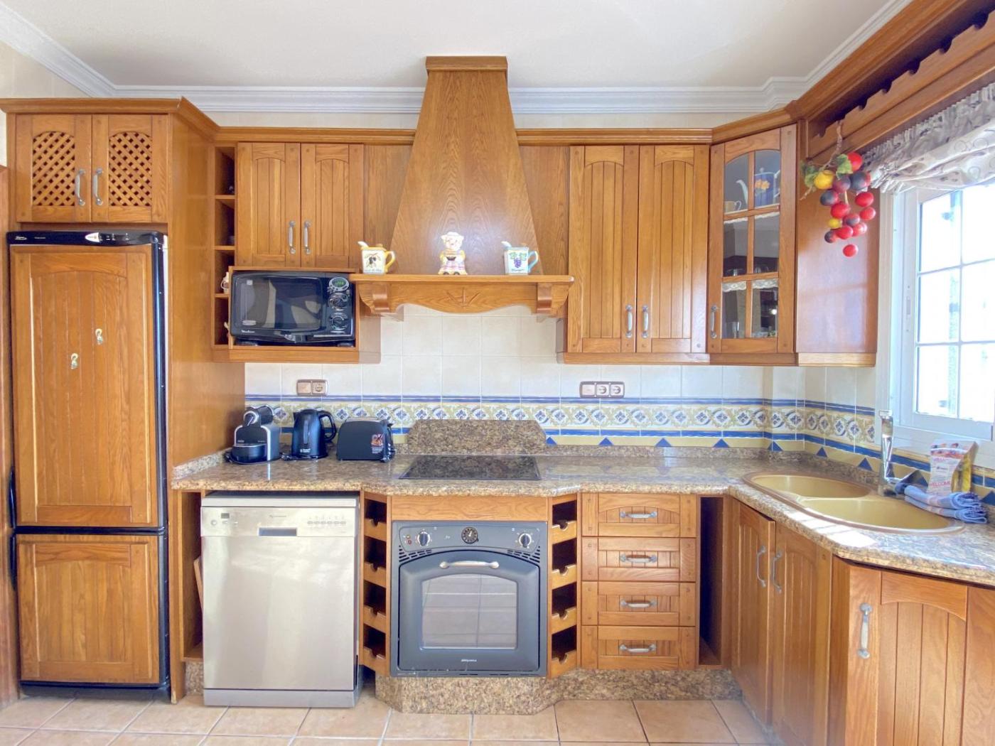 La villa cuenta con 5 dormitorios, 3 baños, ropa de cama, toallas, TV de pantalla plana, zona de comedor, cocina totalmente equipada y terraza con vistas al mar.