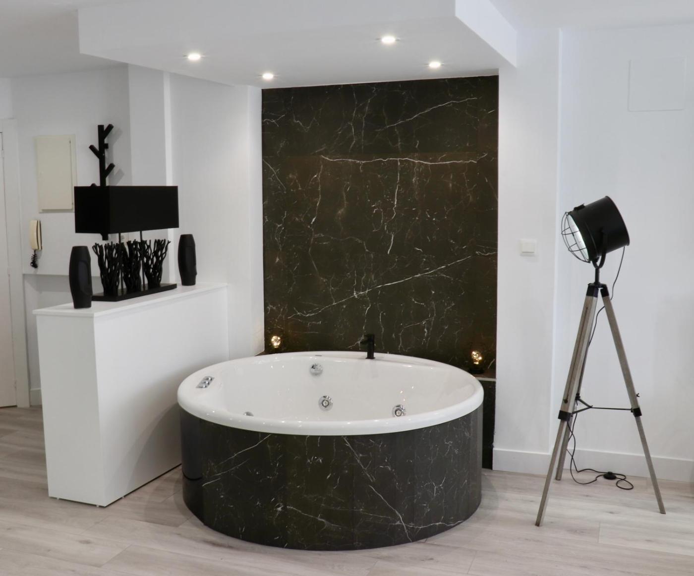 Black and White Suitte "Plaza" está a 4 min a pie de Playa de Trengandín y dispone de alojamiento en Noja con acceso a una bañera de hidromasaje. Se ofrece parking privado por un suplemento.
