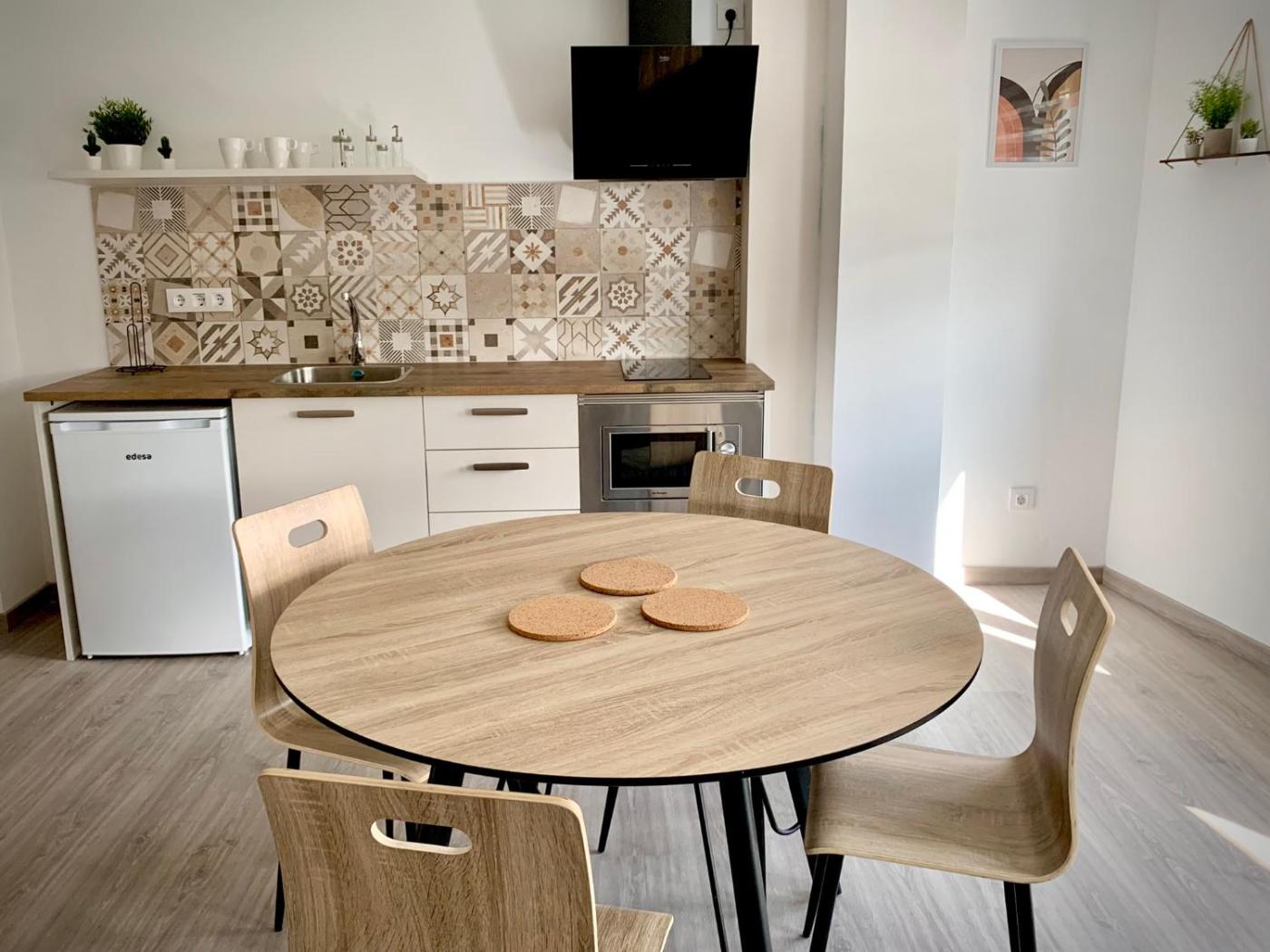 Apartamento con terraza. Boasting 1 bedroom, this apartment has 1 bathroom with a shower, a seating area and terraceyou can relax. Guests can make meals in the kitchen that features a stovetop, a refrigerator, kitchenware and a microwave. The apartment features a coffee machine, a dining area, a sofa, a flat-screen TV with streaming services, as well as mountain views. The unit offers 2 beds. ;