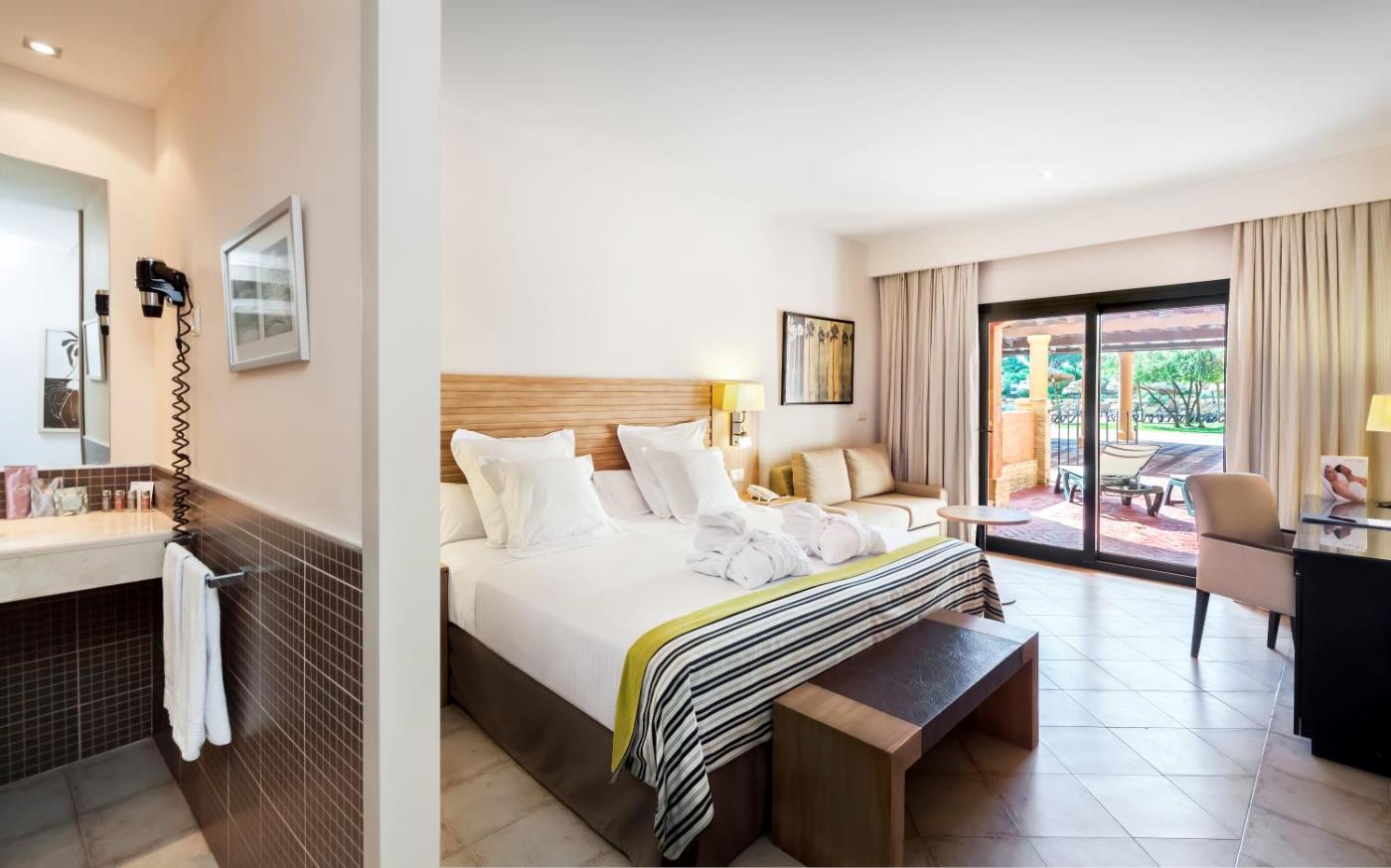 Habitación Doble Superior con servicios premium y acceso gratuito al spa. Esta habitación dispone de terraza, vistas al paisaje de los alrededores, caja fuerte gratuita, minibar gratuito con refrescos, hervidor de agua y regalo de bienvenida para niños. Además, cuenta con albornoces, zapatillas y toallas de piscina. Esta habitación incluye: - Desayuno premium - Acceso diario gratuito de 60 minutos al circuito de agua del spa - Acceso gratuito al gimnasio - Acceso a la zona premium de la piscina - Los regímenes de media pensión, pensión completa o todo incluido incluyen una cena a la carta por cada 5 noches de estancia. ;