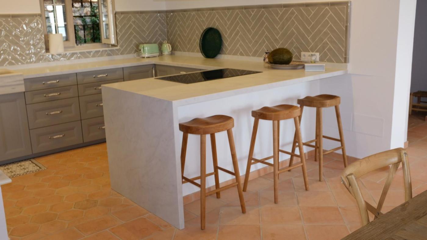 La villa tiene 3 dormitorios, 3 baños, ropa de cama, toallas, TV, cocina totalmente equipada y patio con vistas a la ciudad.