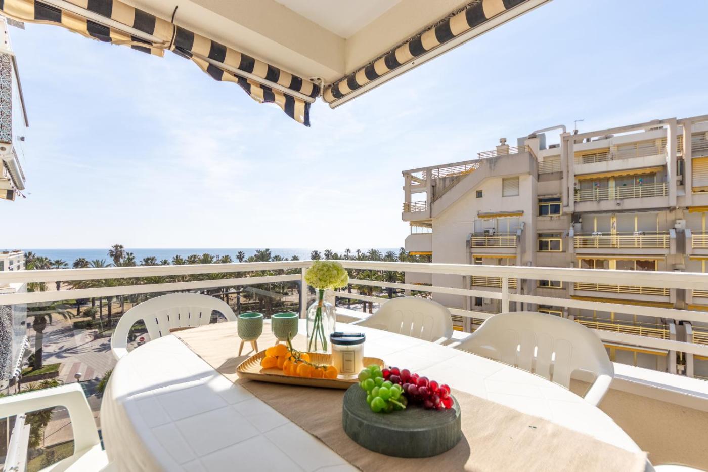 El apartamento cuenta con terraza y vistas al mar, y dispone de 2 dormitorios, una sala de estar, TV de pantalla plana, una cocina equipada con nevera y lavavajillas, y 1 baño con ducha. Hay toallas y ropa de cama en el apartamento.