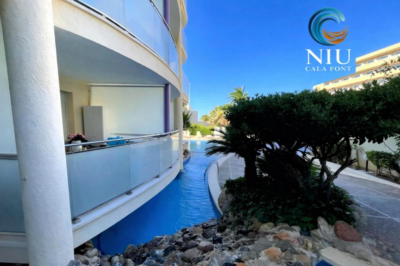 Niu Cala Font, que cuenta con zona de playa privada, salón de uso común y terraza, ofrece alojamiento en Salou con wifi gratis y vistas al mar. Este apartamento con aire acondicionado ofrece alojamiento con balcón.