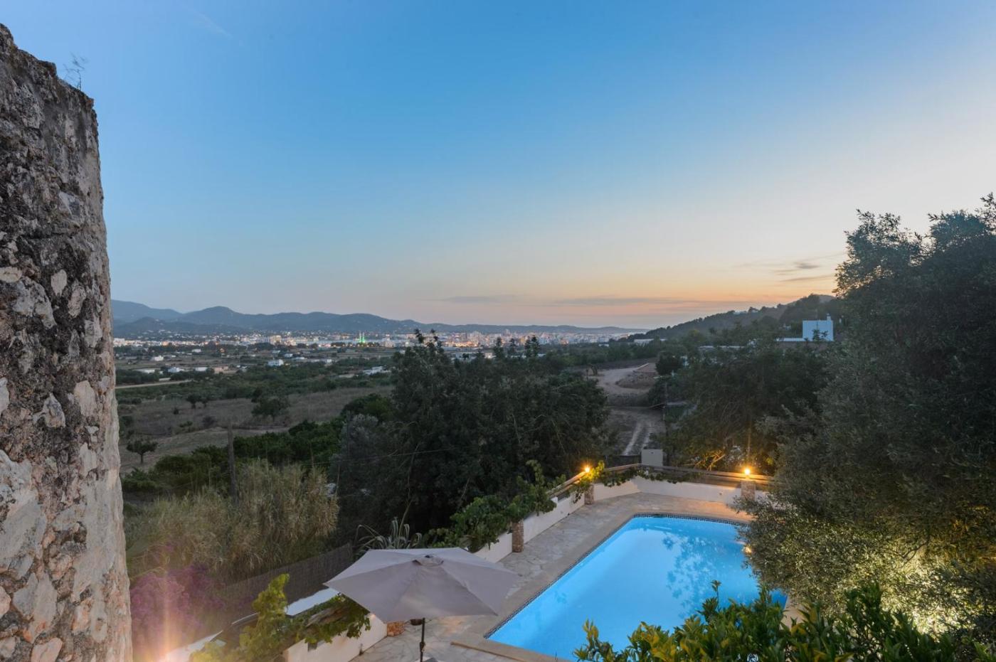 La villa se sitúa a 20,5 km del aeropuerto de Ibiza y a 15 km de la localidad de Ibiza, que alberga una amplia variedad de restaurantes y opciones de ocio.