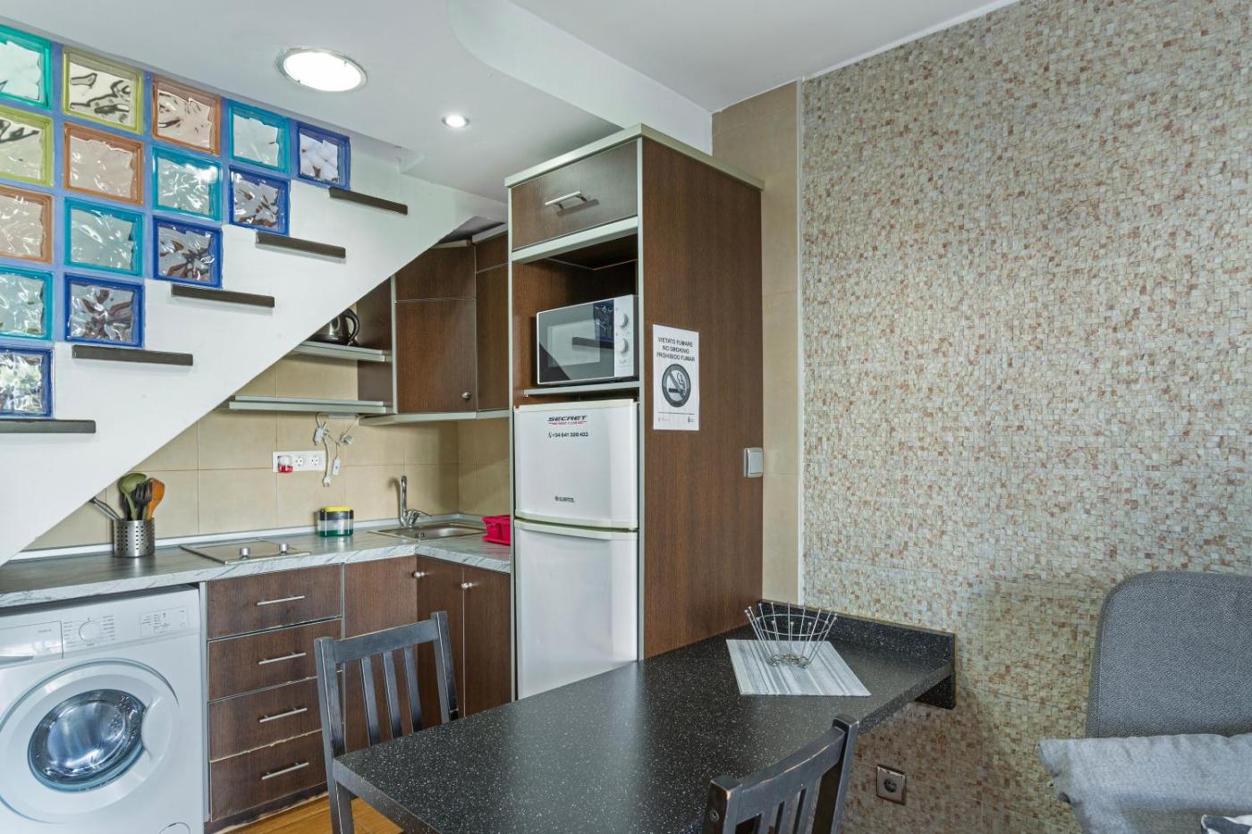 Apartamento con terraza. Featuring a private entrance, this air-conditioned apartment consists of 1 living room, 1 separate bedroom and 1 bathroom with a shower. The well-fitted kitchen has kitchenware, a microwave and a toaster. This apartment features a washing machine, a coffee machine, a TV and a terrace. The unit offers 2 beds.
