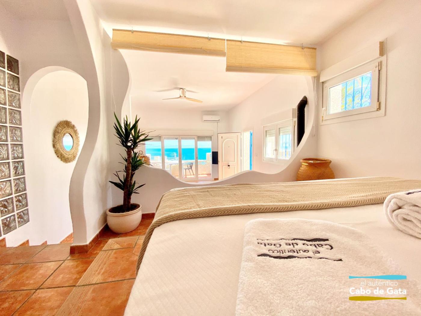 Apartamento de 1 dormitorio. Loft precioso en San José con vistas maravillosas al mar. Ideal para parejas, parejas con 1 niño o 2 personas. Alojamiento recién amueblado y equipado. Se encuentra cerca del acceso a las playas protegidas de los Genoveses y de Mónsul, en el parque natural del Cabo de Gata, y a pocos minutos a pie de las playas, bares y restaurantes de la localidad. Este apartamento se encuentra un entorno único y tranquilo.