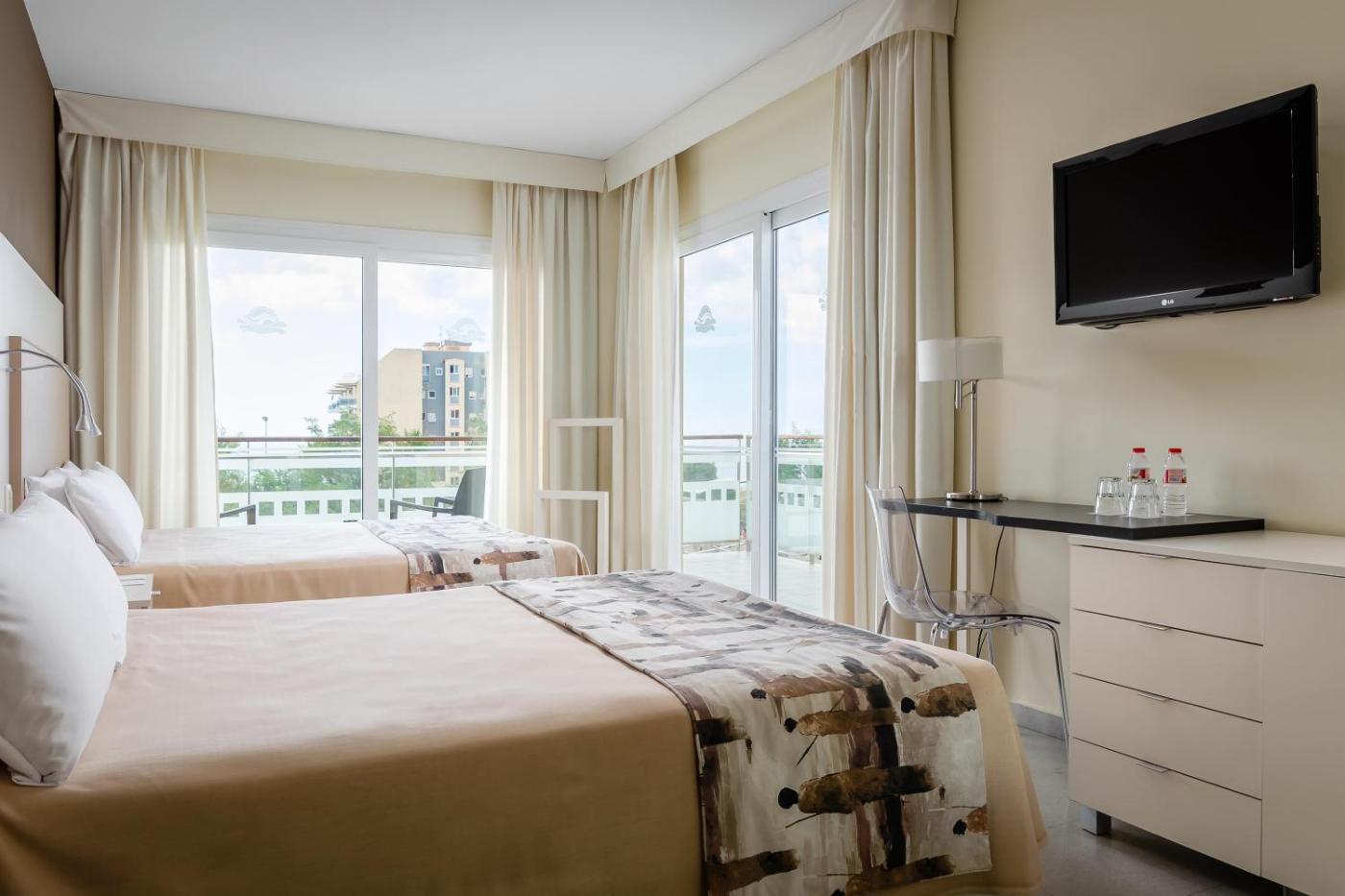 Habitación Doble Premium. Esta habitación moderna cuenta con aire acondicionado, vistas al mar y balcón grande. Cuenta con 2 camas dobles, TV de pantalla plana vía satélite y WiFi gratuita. También incluye muebles de madera, minibar y teléfono. El baño privado cuenta con ducha y secador de pelo. ;